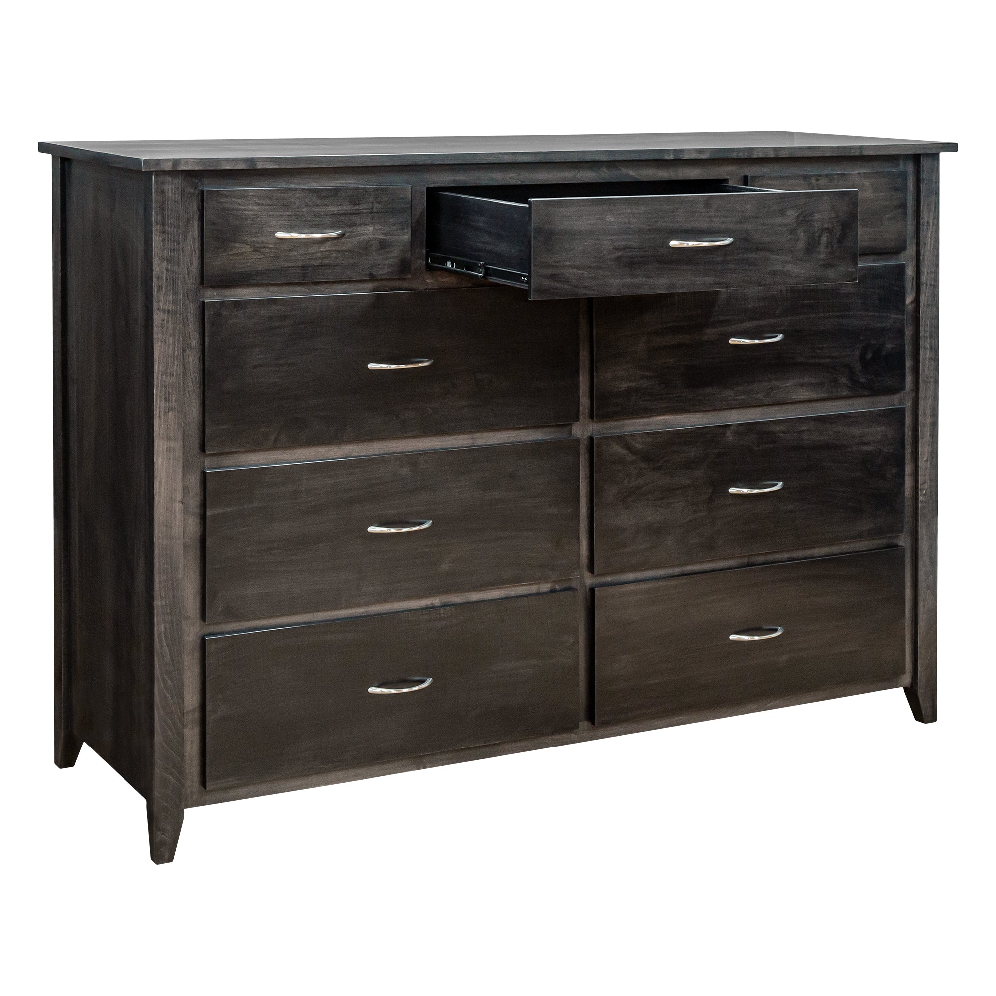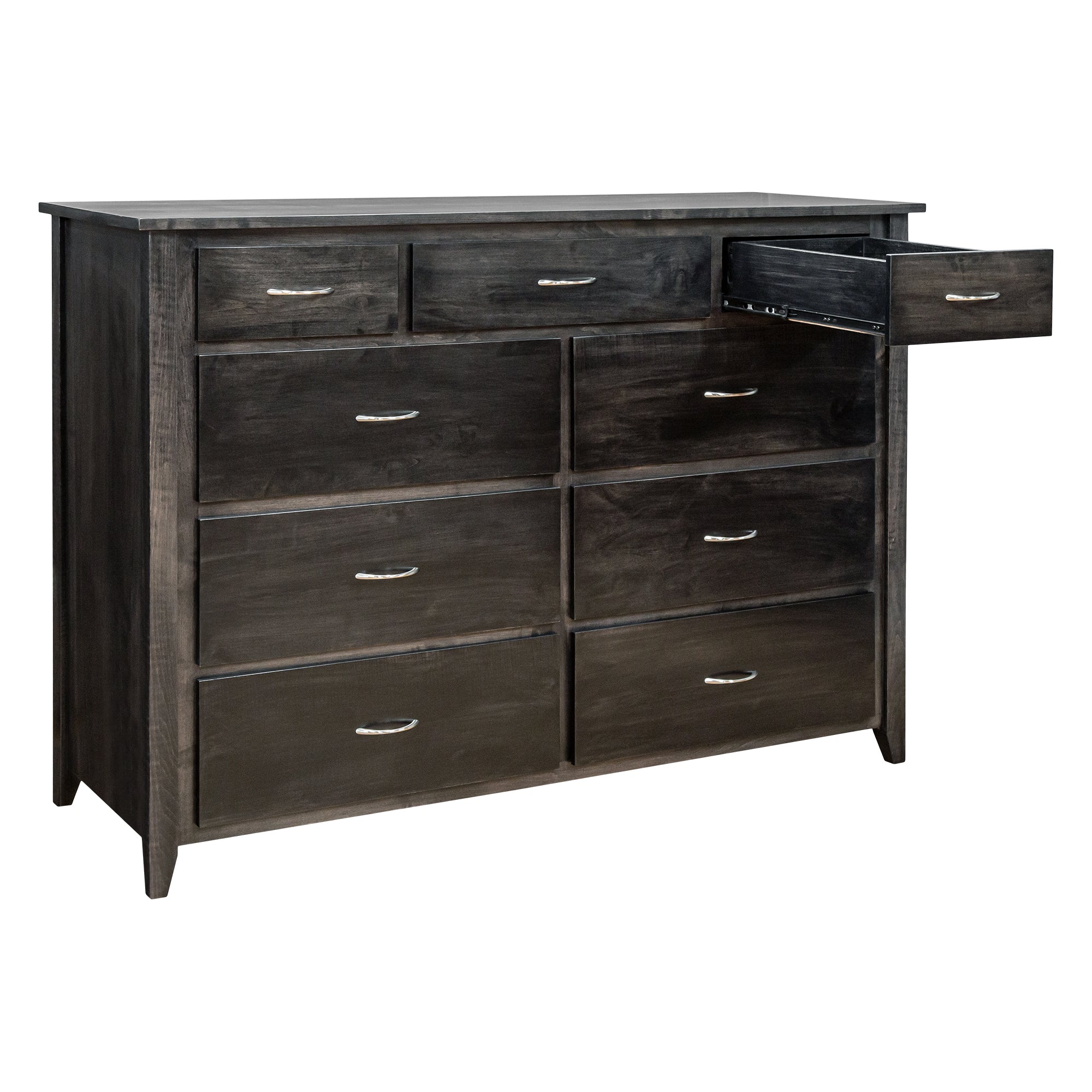 This Amish-crafted 9-Drawer Brown Maple Dresser features solid drawers that include traditional English dovetail joints. The drawers sit on full-extension drawer guides that easily glide open and shut with no exertion necessary. This piece is sealed with a conversion varnish that protects it from water, alcohol, and even nail polish remover.