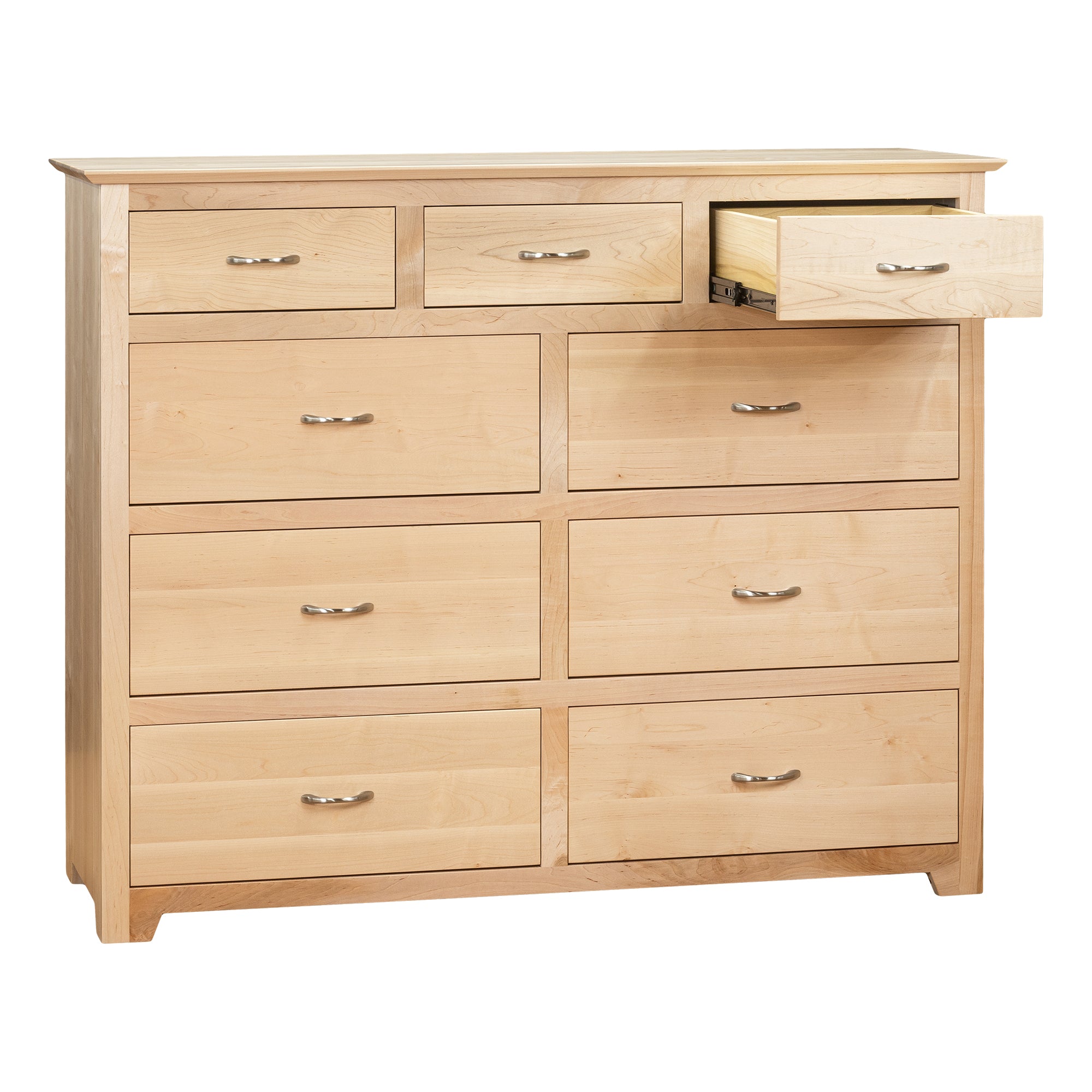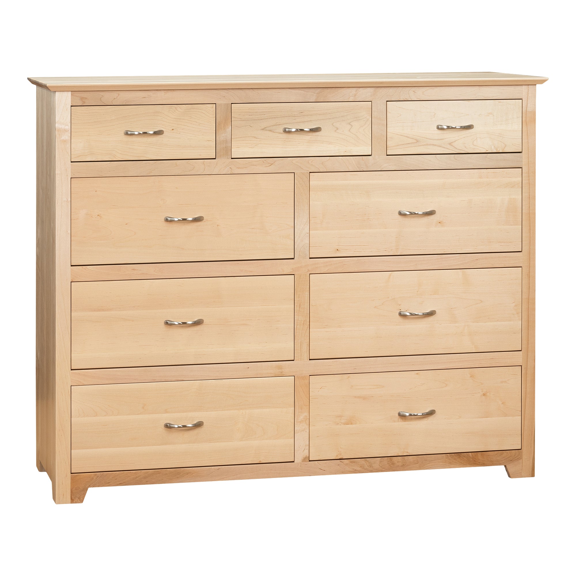 Our distinctive YC series of dressers and chests have a hint of "Arts and Crafts" and yet "Mid Century" details and materials. We use Walnut Solids and distinctive Wormy Maple contrasts. Available in all Walnut or any way you like. Note distinctive brushed nickel hardware. There are also different hardware alternatives.