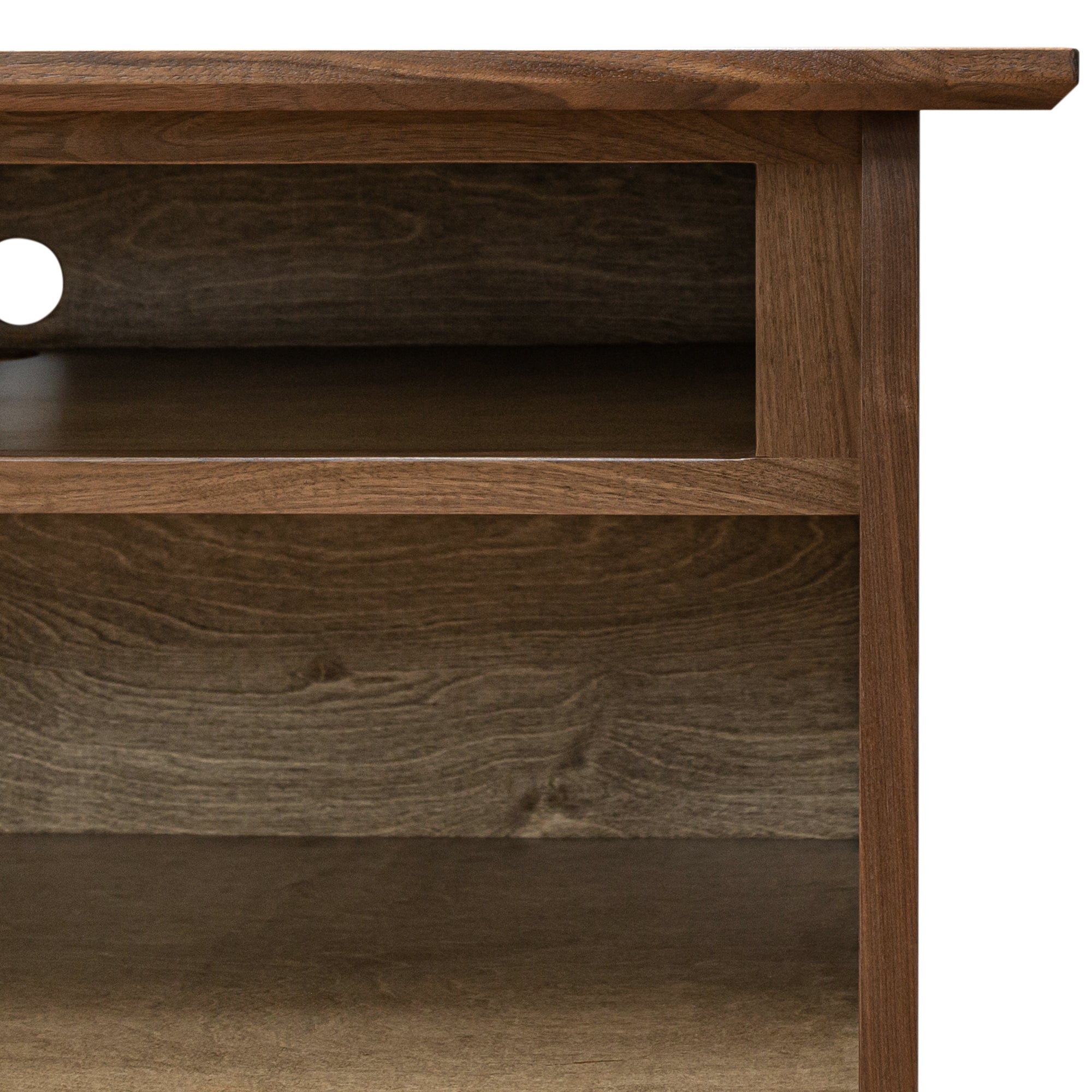 This extraordinarily durable Amish Mission TV Stand is sealed with conversion varnish that protects this piece from water, oil, alcohol, and even nail polish. In addition, the drawers have English dovetail and sit on full-extension ball bearings that gently and easily glide open and shut. These features give this TV Stand not only a distinguished look but an elegant and prestigious feel as well.