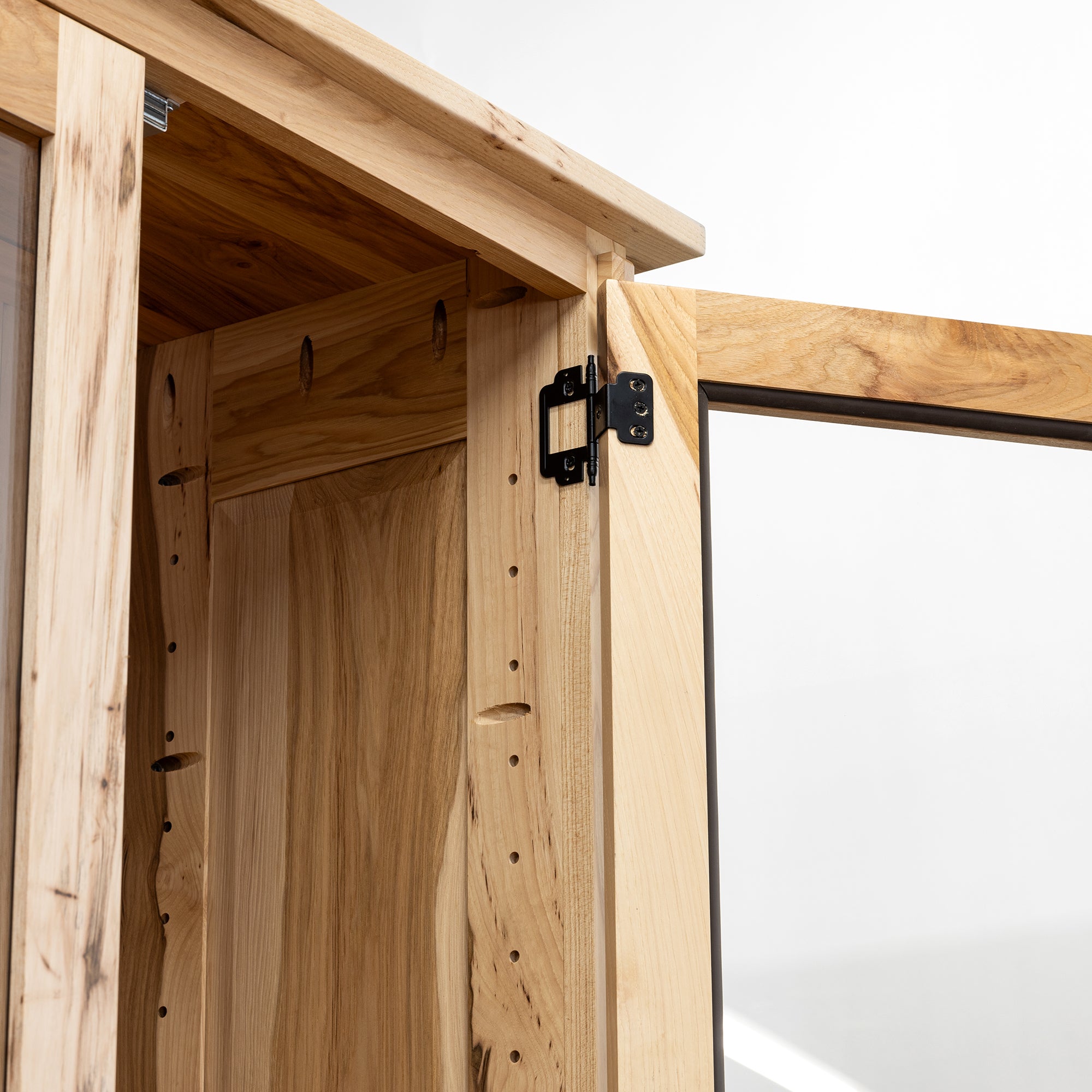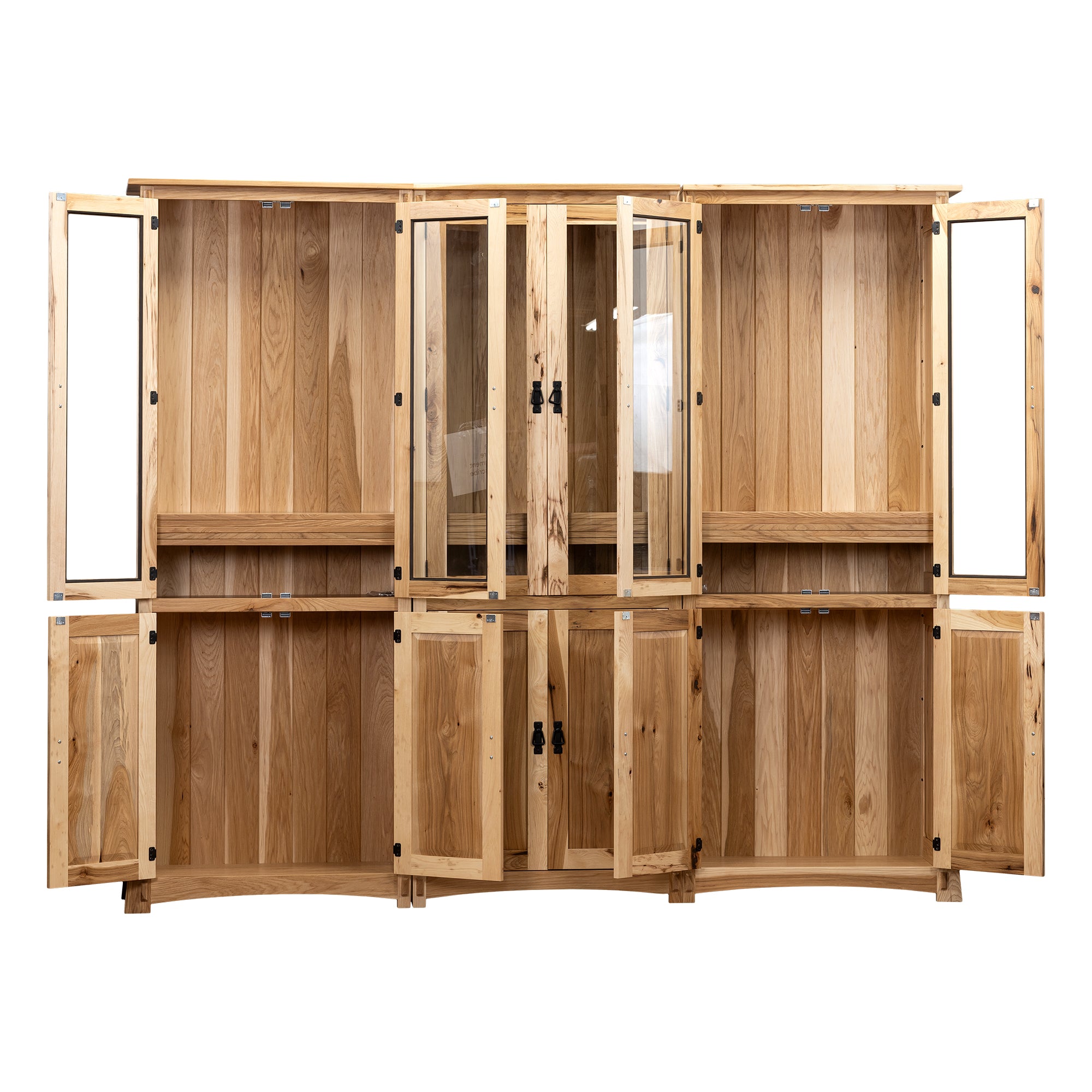 This 96" Hickory/Red Oak Pie Safe is another great addition to our Barn Furniture Collection. It's a beautiful combination of different woods that gives it a very unique look. Made by highly skilled craftsman and the woods are hand selected and then kiln dried. The three solid red oak shelves are adjustable. It will accommodate all of your food storing needs. This is beautifully finish in the natural stain that emphasize the unique grain pattern of both woods.