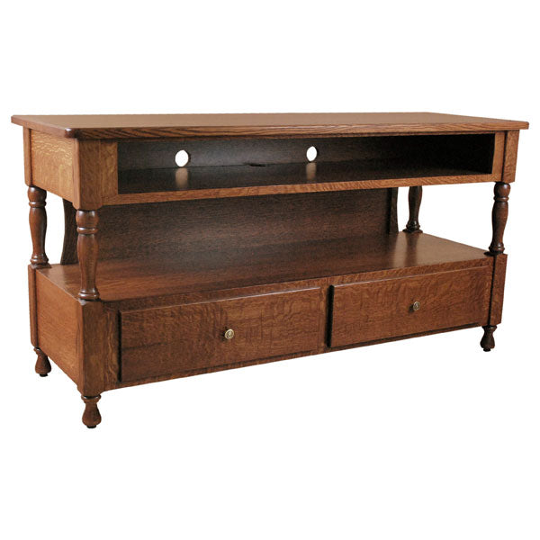 This Amish 60? Traditional TV Stand is perfect for sustaining wide screen plasma TVs. This unit is constructed from Solid Quarter Sawn White Oak and finished in a Mission finish (shown) which is protected by a conversion varnish that guards against stains caused by water, oil, alcohol and even nail polish.