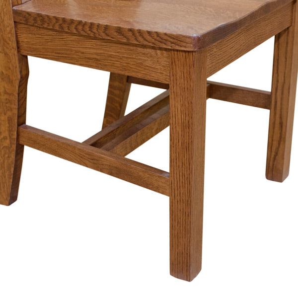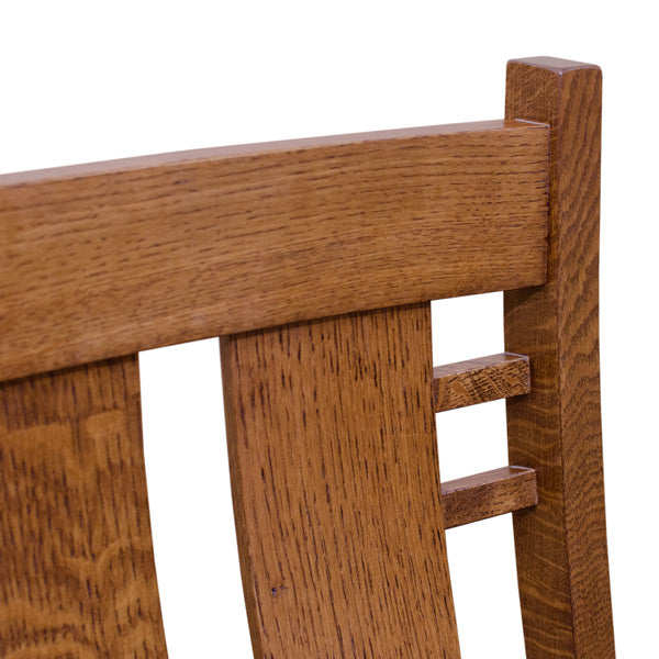 This Amish Mission Bungalow Side Chair is constructed out of solid Oak and is skillfully handmade by highly experienced Amish Craftsmen in the Heartland of America. Inspired by the Arts & Crafts movement at the turn of the last century, this beautiful mission style chair features a curved back that accommodates the natural curve of the spine providing excellent comfort.