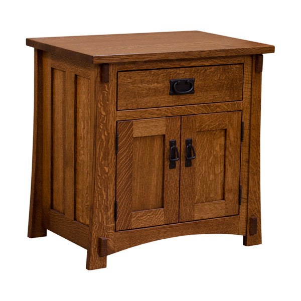 This Amish-Made Mission Nightstand was handcrafted with the utmost diligence and the strictest attention to detail. Constructed using 1/4-sawn white oak (shown) by experienced Amish craftsmen, this furniture offers superior durability and an unsurpassed level of quality.