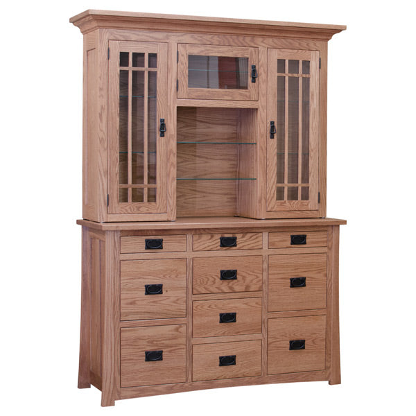 This magnificent and striking 58? Dutch China Cabinet is hand made by the Amish Craftsman and is made of individually hewn solid Red Oak wood planks. Each drawer has traditional tennon joints with full extension glides. With the OCS 108 finish, it shows off the beautiful grain pattern of the Solid Red oak wood.