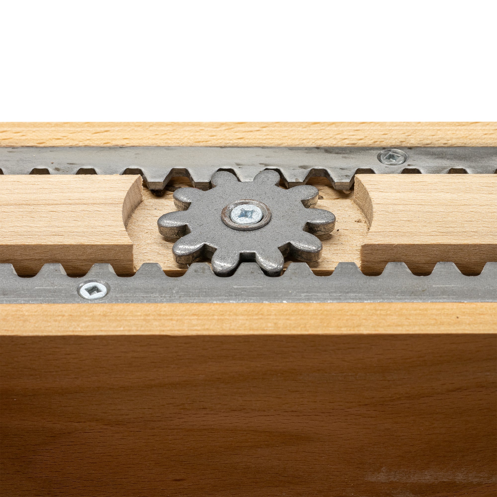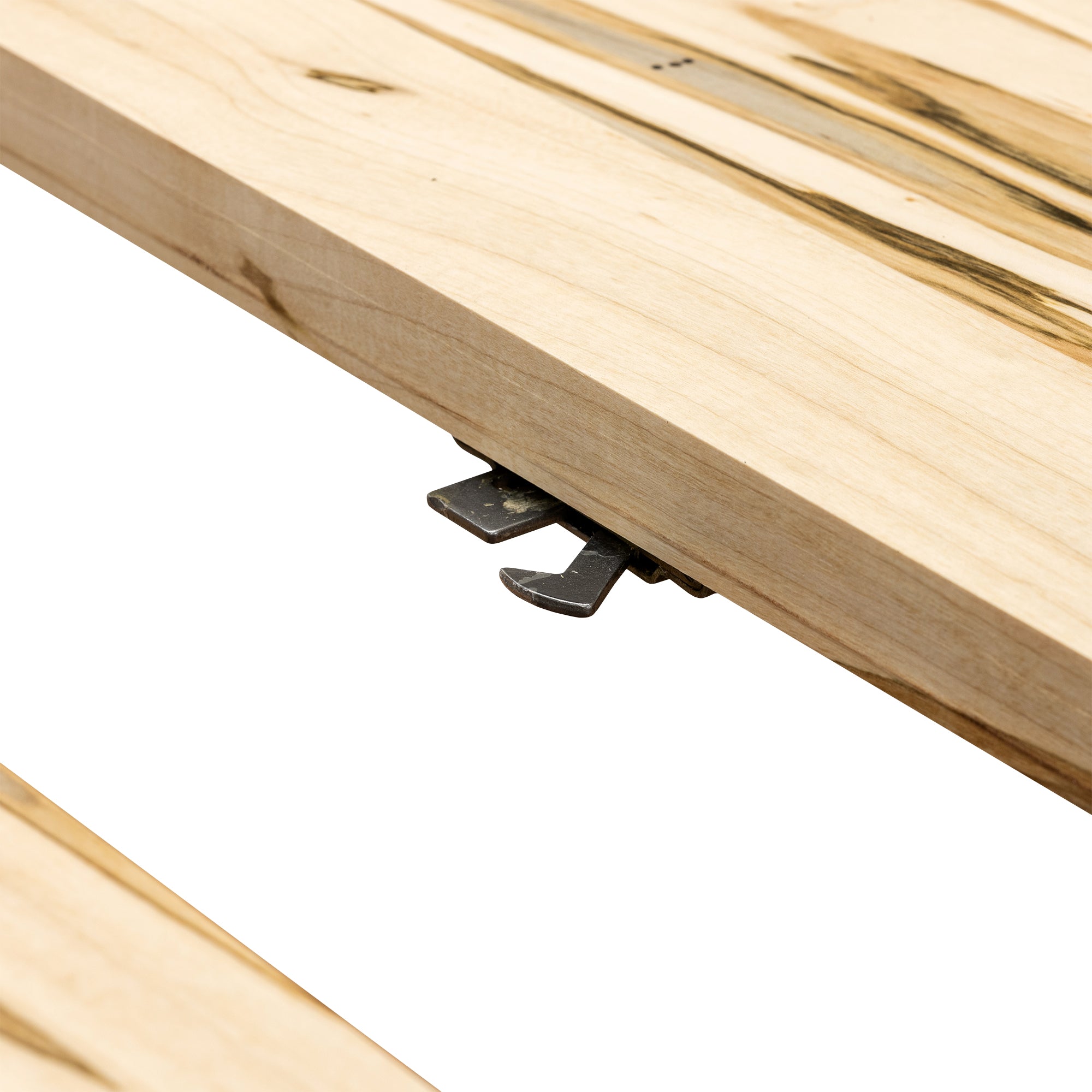The unique pattern of the wormy maple with lightly distress has beautiful brown and gray stripes with small holes do not make the wood less sturdy. This wood dining table comes with four self storing leaves and a rack and pinion glides. A distinctive table that will be admired and enjoy by your family and your guests alike.