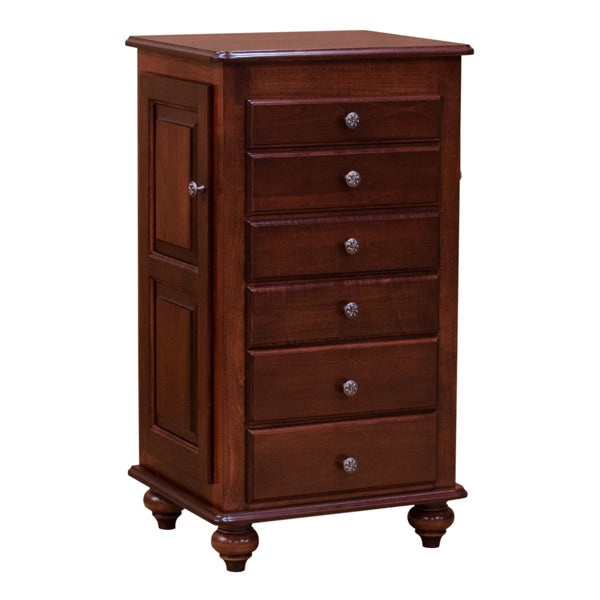 This beautiful Jewelry armoire is made out of solid brown maple and constructed by highly skilled craftsman. It is built with high degree of construction unlike the typical jewelry armoire that you find that is made out of particle board. Its small size is perfect for a limited space.