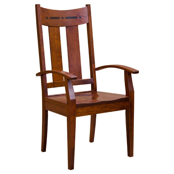 This Lilac Cherry Wood Arm Chair with Inlay is handmade by skilled Amish craftsmen in the Heartland of America. Inspired by the Mission and Arts & Crafts movement, specifically the works of architects Greene & Greene, this beautiful chair features Cherry Wood (shown) construction and an old world craftsmanship that?s rarely found in today?s furniture.