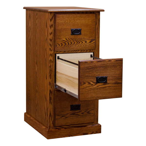This Three Drawer Amish Mission Legal File Cabinet is constructed skillfully in the United States by highly experienced Amish Craftsmen using solid Red Oak (shown). This file cabinet is the perfect piece to keep your paper work-organized while adding elegance to your home office.