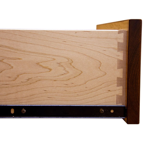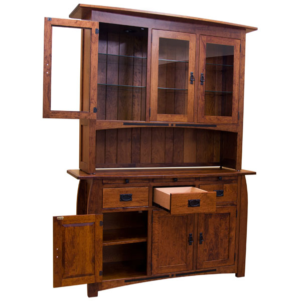 This exceptionally durable Amish China Cabinet is also sealed with conversion varnish that protects this elegant piece from water, oil, alcohol and even nail polish. In addition, the drawers sit on full-extension under-mount soft-close drawer guides that easily and gracefully glide open and shut with no exertion necessary. Furthermore, this china also features pull-out boards that also sit on full-extension side-mount soft-close drawer guides that easily open and shut. These features give this server not only a refined look but a prestigious feel as well.