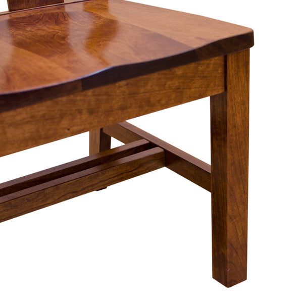 This Amish Mission Bungalow Side Chair with inlay is constructed out of solid cherry and is skillfully handmade by highly experienced Amish Craftsmen in the Heartland of America. Inspired by the Arts & Crafts movement at the turn of the last century, this beautiful mission style chair features a curved back that accommodates the natural curve of the spine providing excellent comfort.