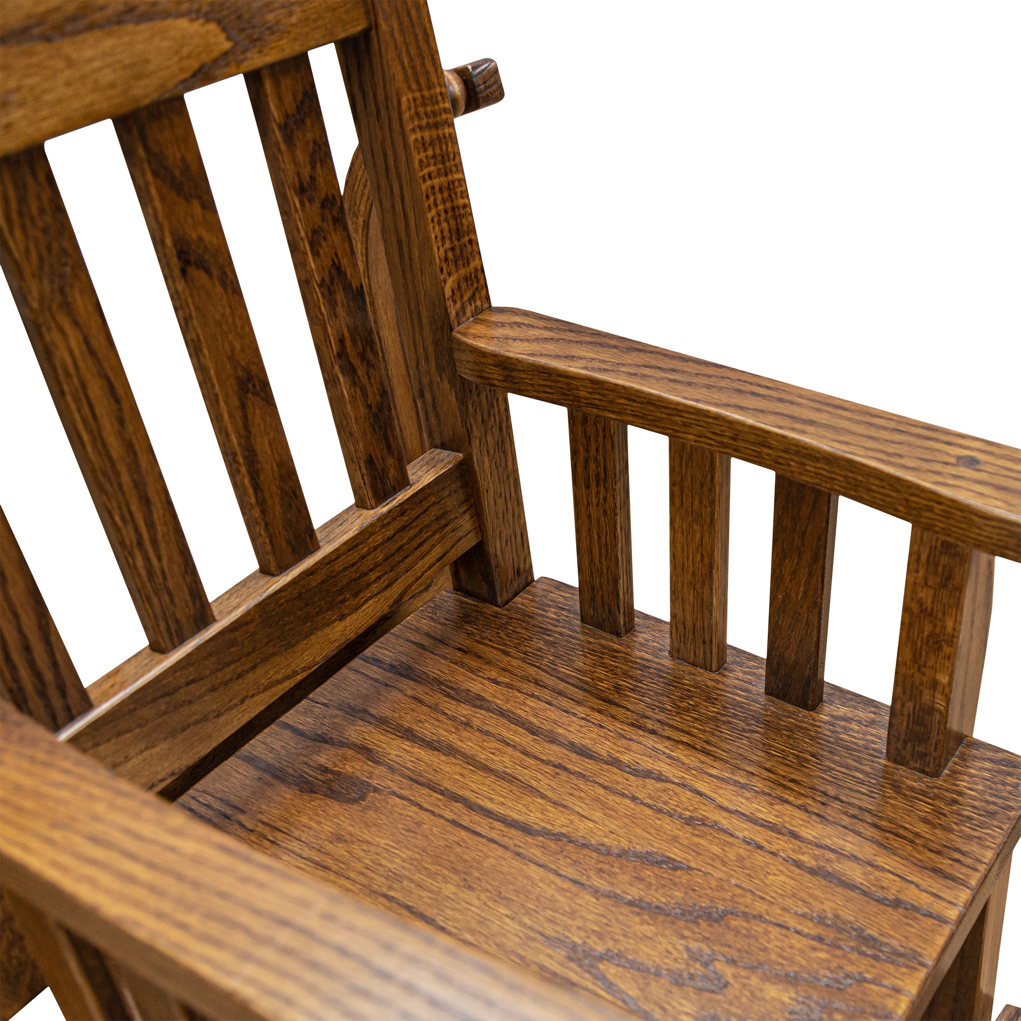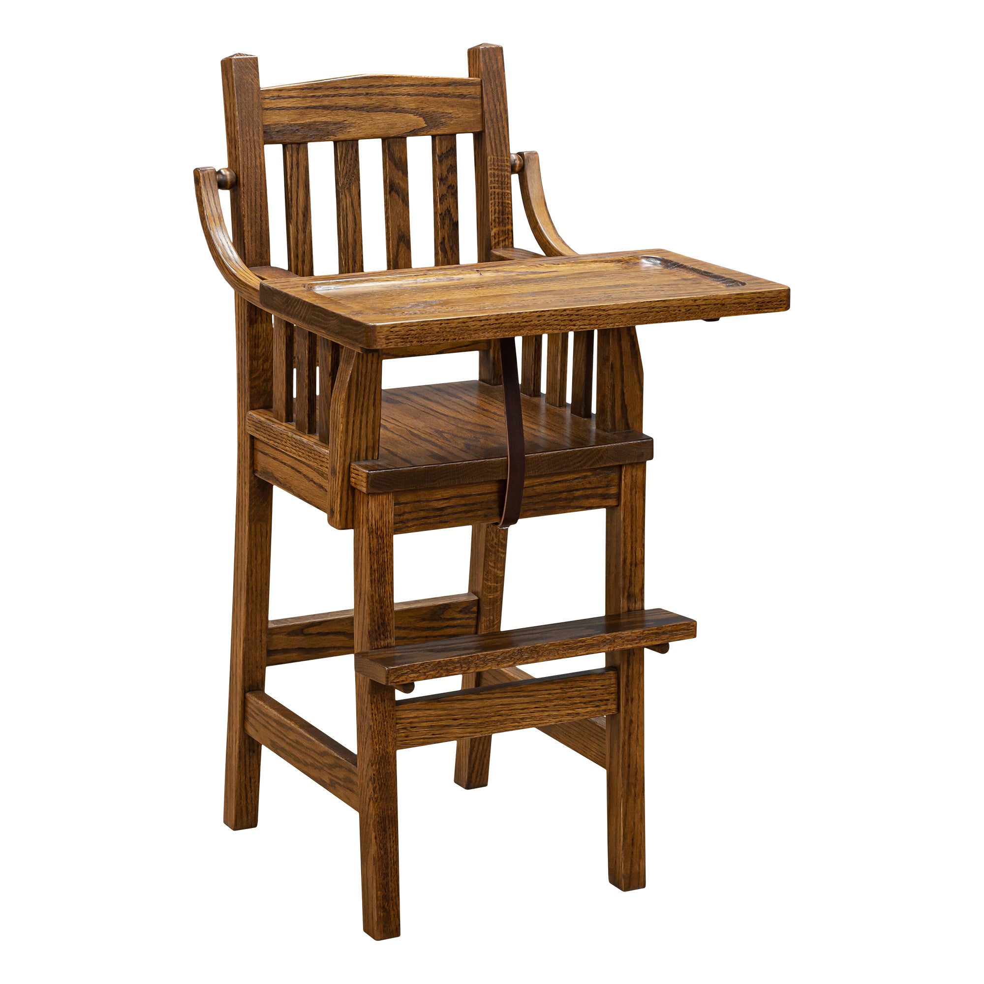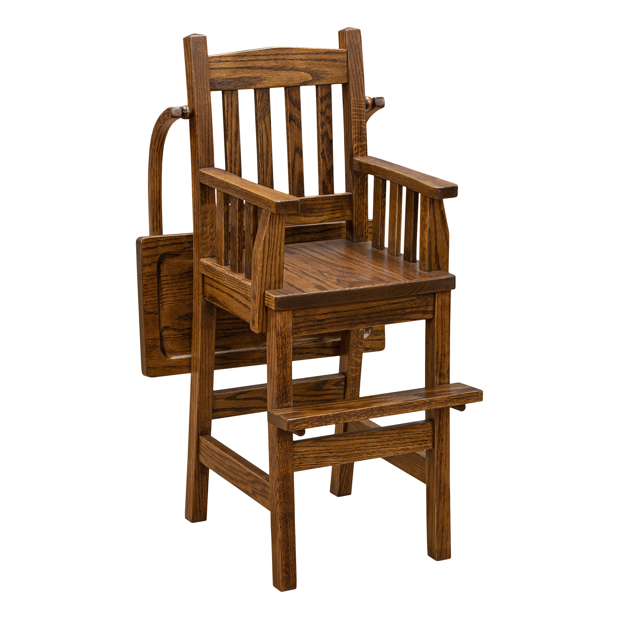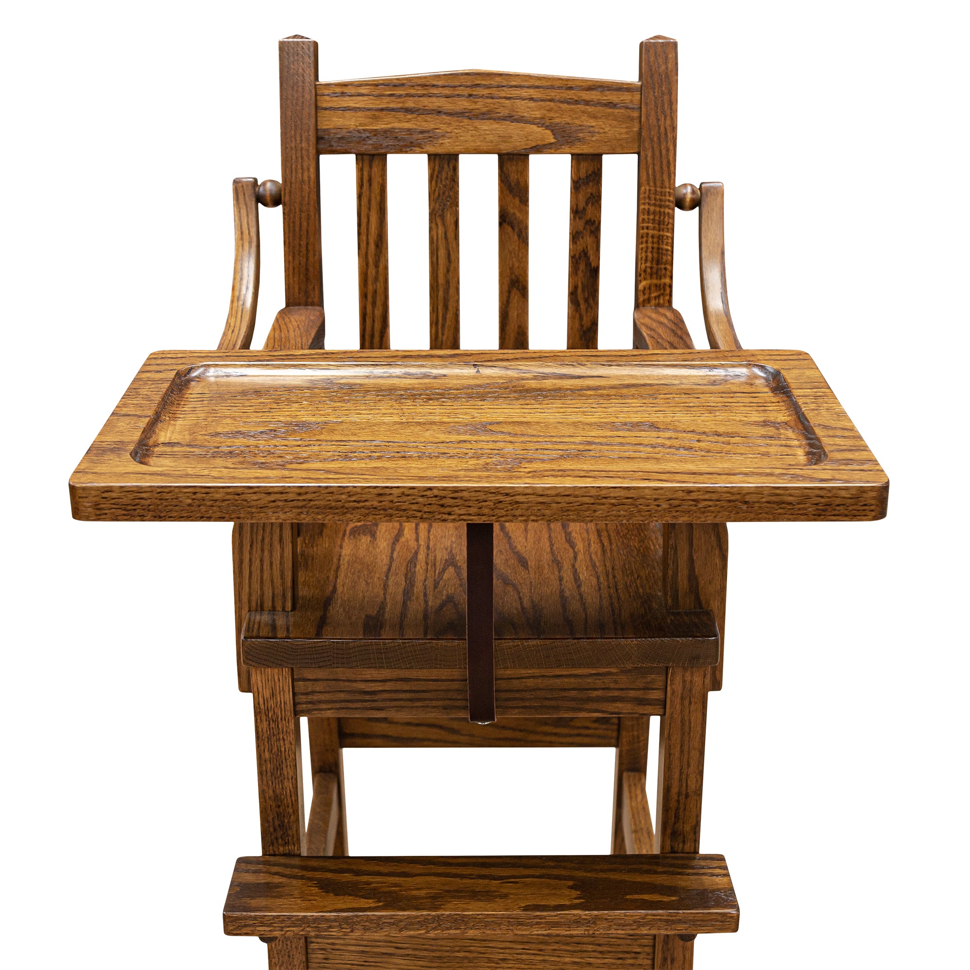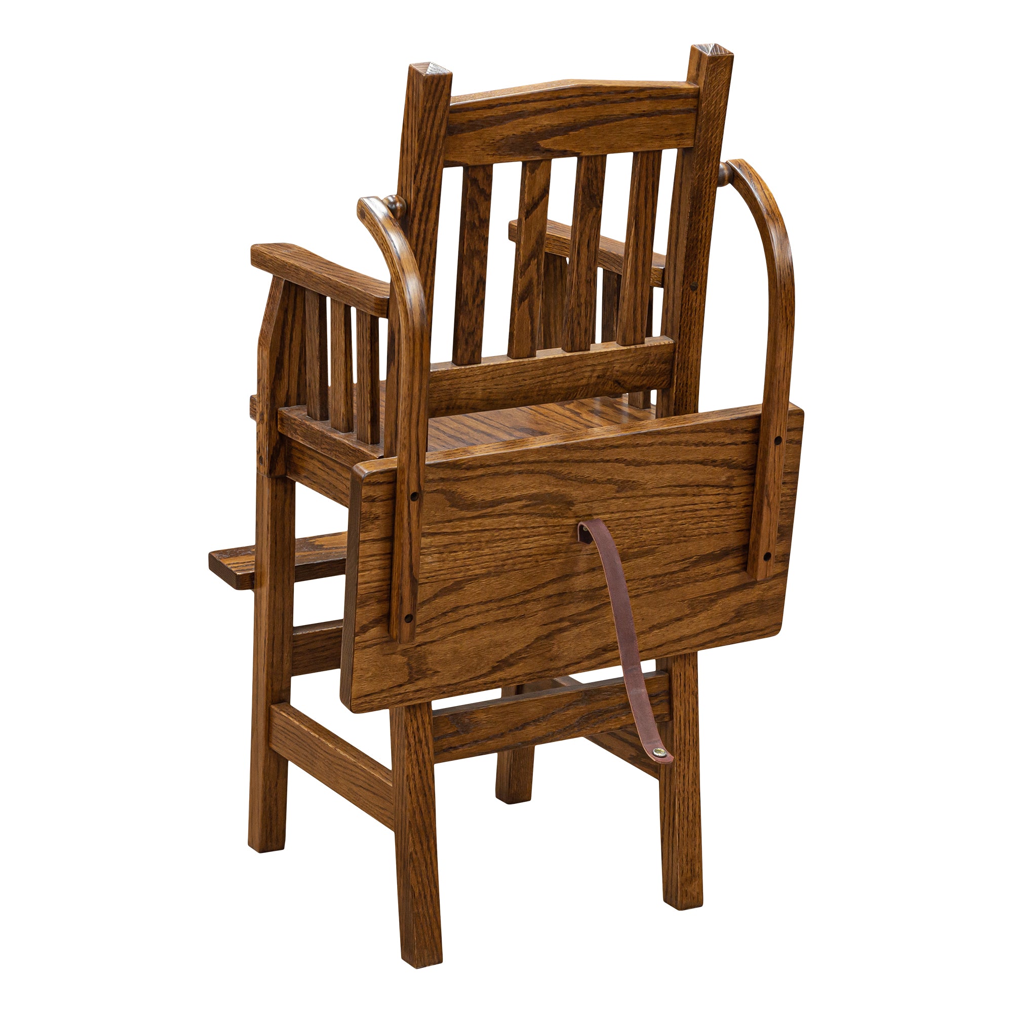 This Amish Mission Child's High Chair is handmade in the Heartland of America by the Amish Craftsmen. This durable high chair is sealed with conversion varnish that protects it from water, oil, alcohol and even nail polish. In addition, this child?s high chair features a removable top and a safety latch to protect your child from falling. These features make this this elegant yet sturdy high chair a great and safe addition to your dining room.
