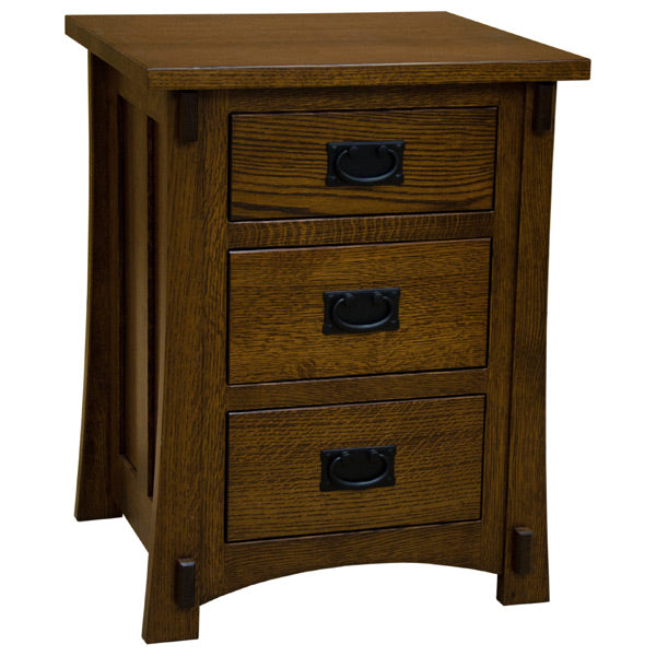 This Amish Mission Dutch 3-Drawer Nightstand was handcrafted with the utmost diligence and the strictest attention to detail. Constructed using solid oak by experienced Amish craftsmen; this furniture offers superior durability and an unsurpassed level of quality.