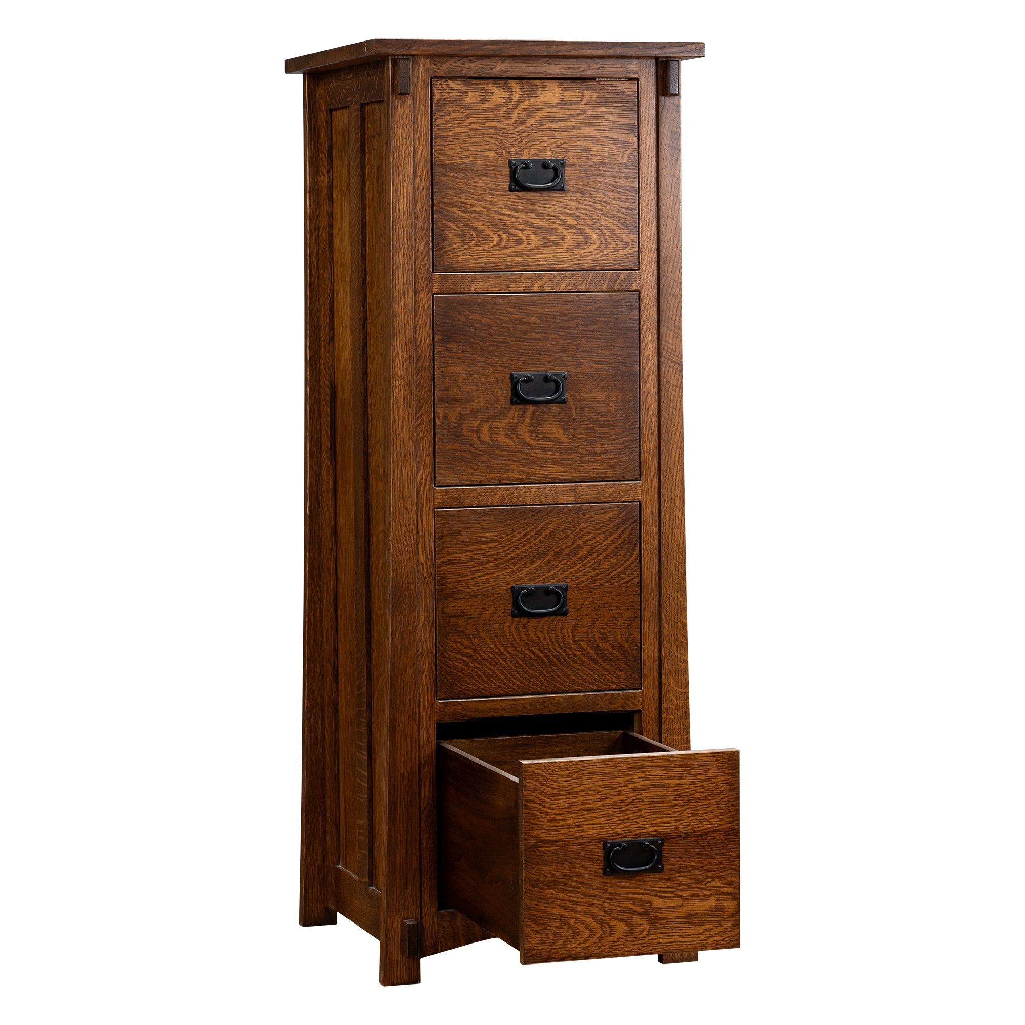 This Amish Mission Four-Drawer File Cabinet is a perfect piece to keep your paper work well-organized while adding elegance to your home office. This File Cabinet is skillfully constructed by highly experienced Amish Craftsmen in the United States using Solid Quarter Sawn White Oak (shown). This Amish handmade file cabinet boasts an unparalleled level of craftsmanship and you take pride in owning furniture that's built to the highest standards and with the strictest attention to detail.