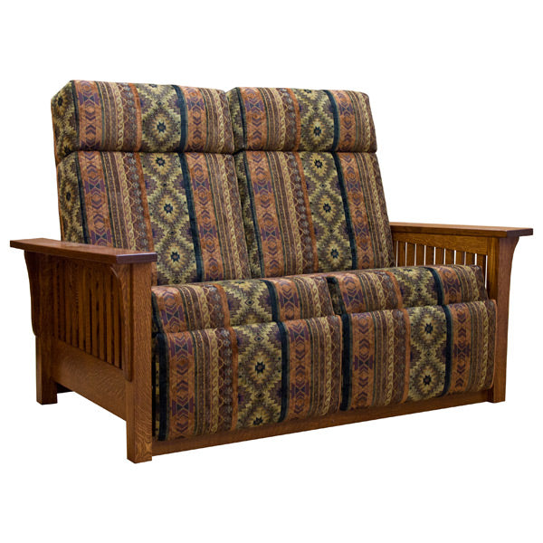 This exceptionally durable Mission Love Seat Recliner features a sealed conversion varnish that protects this elegant piece from water, oil, alcohol and even nail polish. On top of all that, the ergonomically designed furniture is hand sanded and smooth to the touch. This furniture also features full Mortise & Tennon construction in which the joint of solid wood pieces are fitted together like a puzzle and glued together offering superior strength and durability.