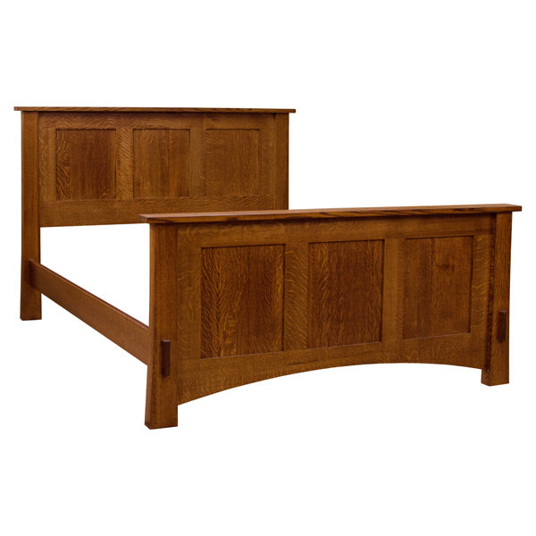 The Amish-built Mission Panel Queen Bed features heirloom quality typical of Amish constructed furniture. It is constructed from highly experienced Amish Craftsmen out of Solid Quarter-sawn White Oak and finished in a Warm Mission Cherry (Shown).