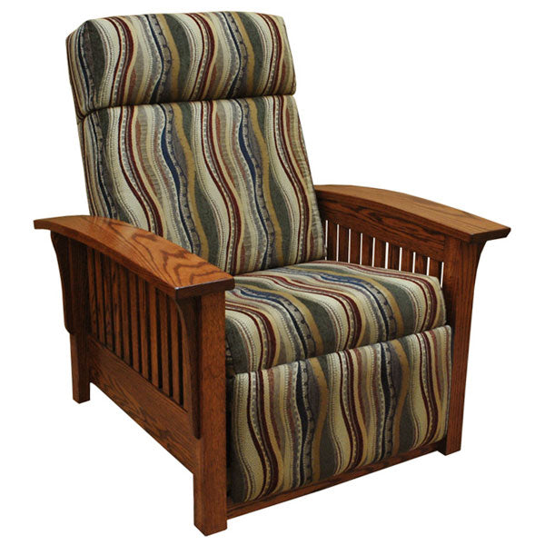 This Amish Mission Recliner Chair boasts an unparalleled level of craftsmanship in handmade furniture. Constructed by skilled Amish craftsmen using plain cut red oak (shown), you can take pride in owning furniture built to the highest standards with the strictest attention to detail and unparalleled craftsmanship.