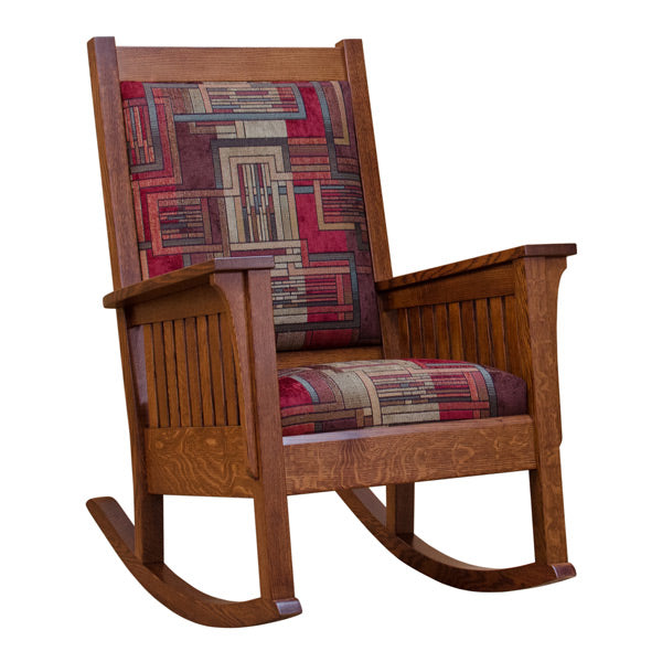 This beautiful Mission Amish Rocking Chair is built to the standards exemplified by the Arts & Crafts Movement. Handcrafted by highly experienced Amish furniture makers in the Heartland of America, this rocker is constructed from solid quarter sawn Northern White Oak (shown) and features a smooth silky finish.