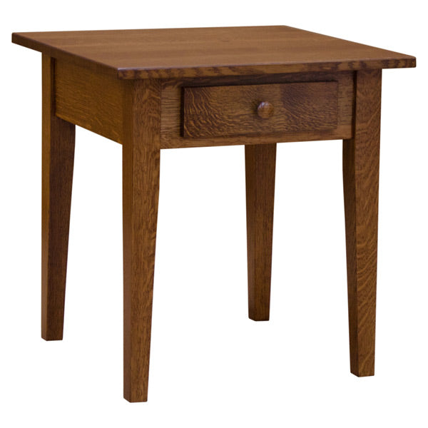 This Amish Mission Shaker End Table w/ Drawer is skillfully constructed in the United States by highly experienced Amish Craftsmen using Solid Quarter Sawn White Oak (shown). This Amish made End Table boasts an unparalleled level of craftsmanship in handmade furniture and you can take pride in owning furniture built to the highest standards and with the strictest attention to detail.