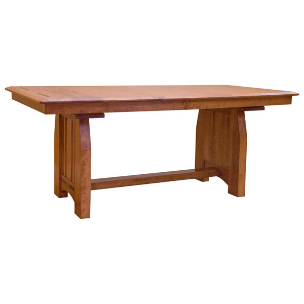 This Amish Mission Vale Boat Table w/ Four Leaves is part of our Amish Collection, promising excellent construction and fine details that are standard in the Amish tradition. This table is skillfully constructed by highly experienced Amish Craftsmen in the Heartland of America and it is built using Cherry Wood (shown). In addition, this table features self-storing leaf system, ebony inlay, and a sealed conversion varnish that protects this piece from water, oil, alcohol and even nail polish.