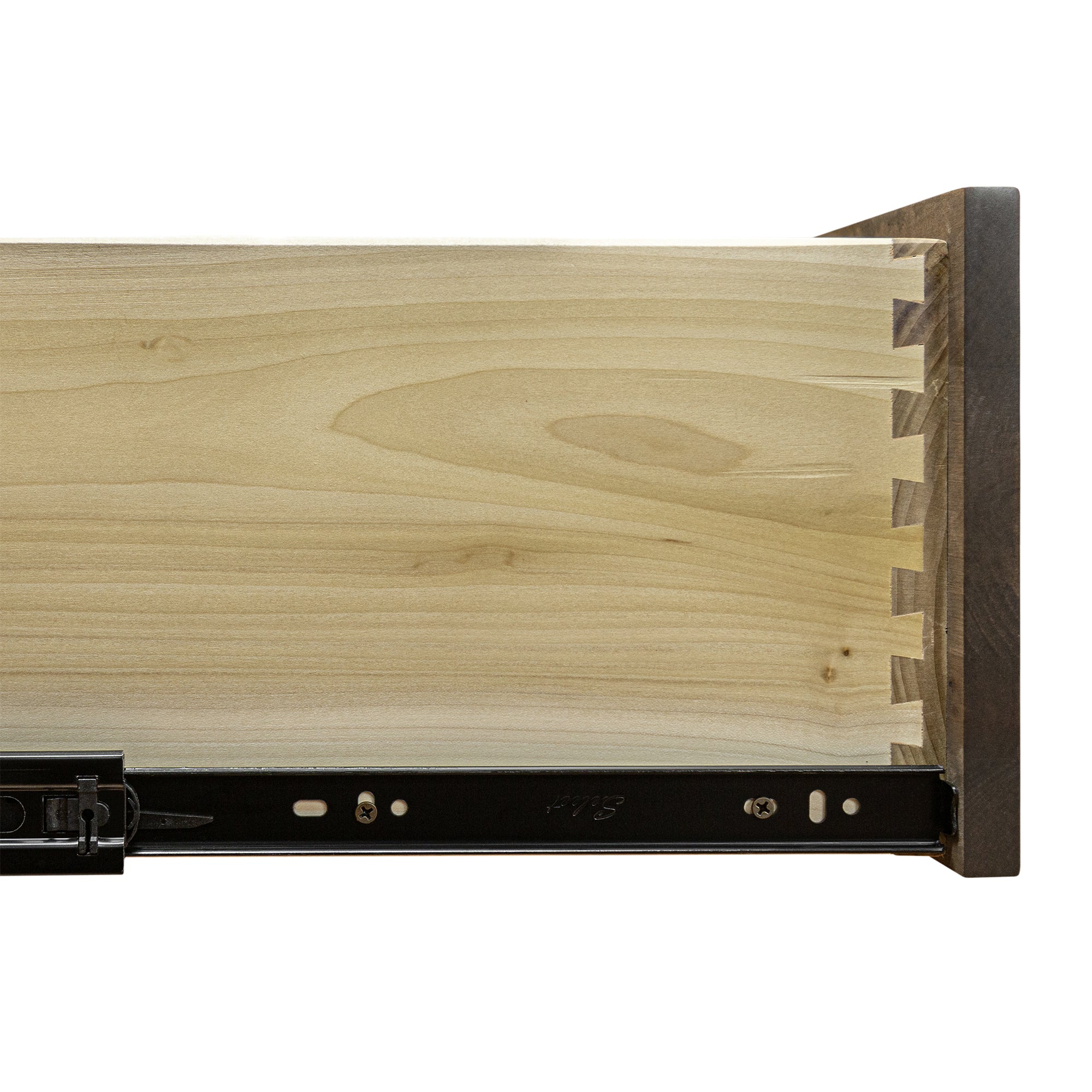 Behind the doors is two fixed shelves that can be made with adjustable shelves. There is also an option of having a hanging rod for hanging clothes. The drawers are full extension and constructed with English Dovetail joints.