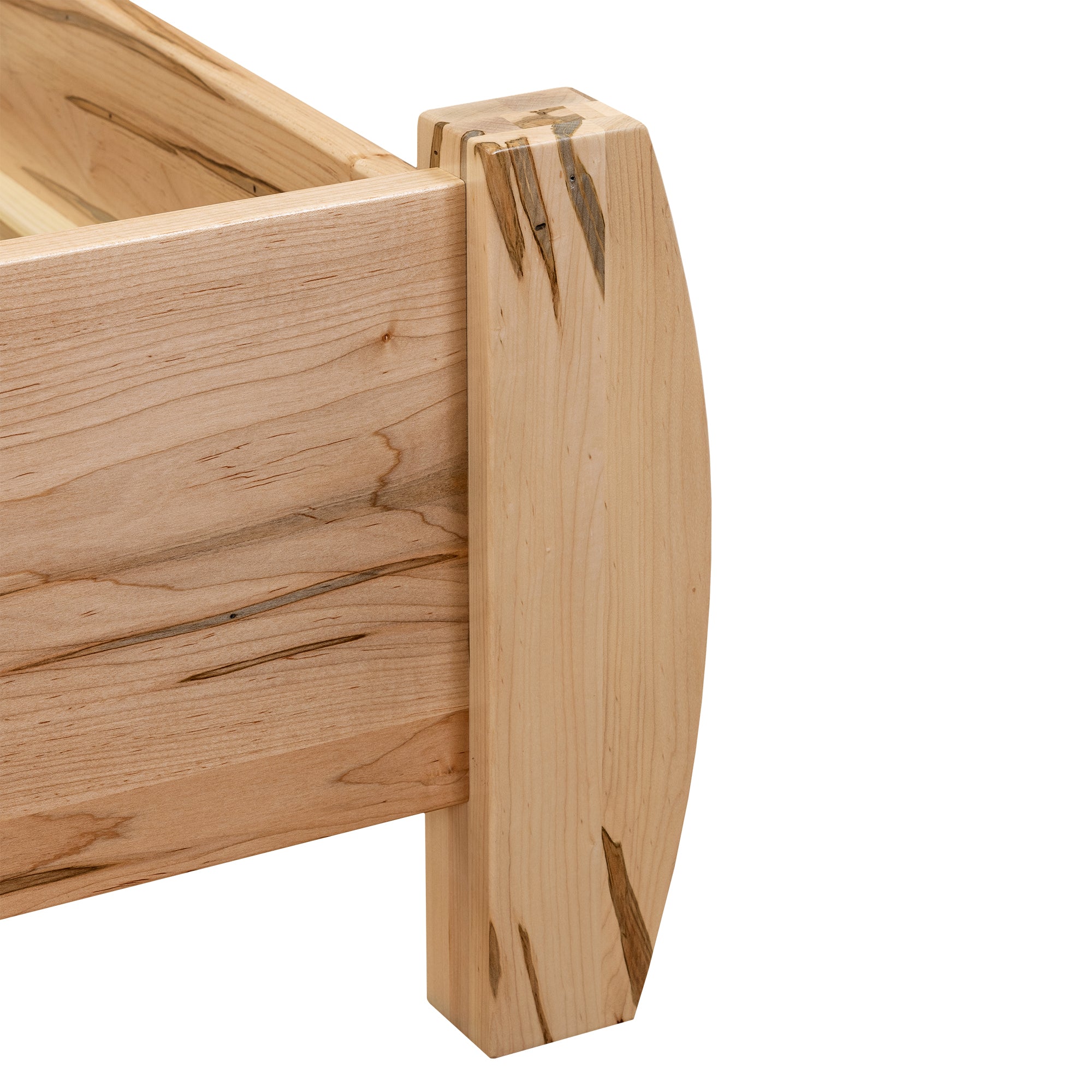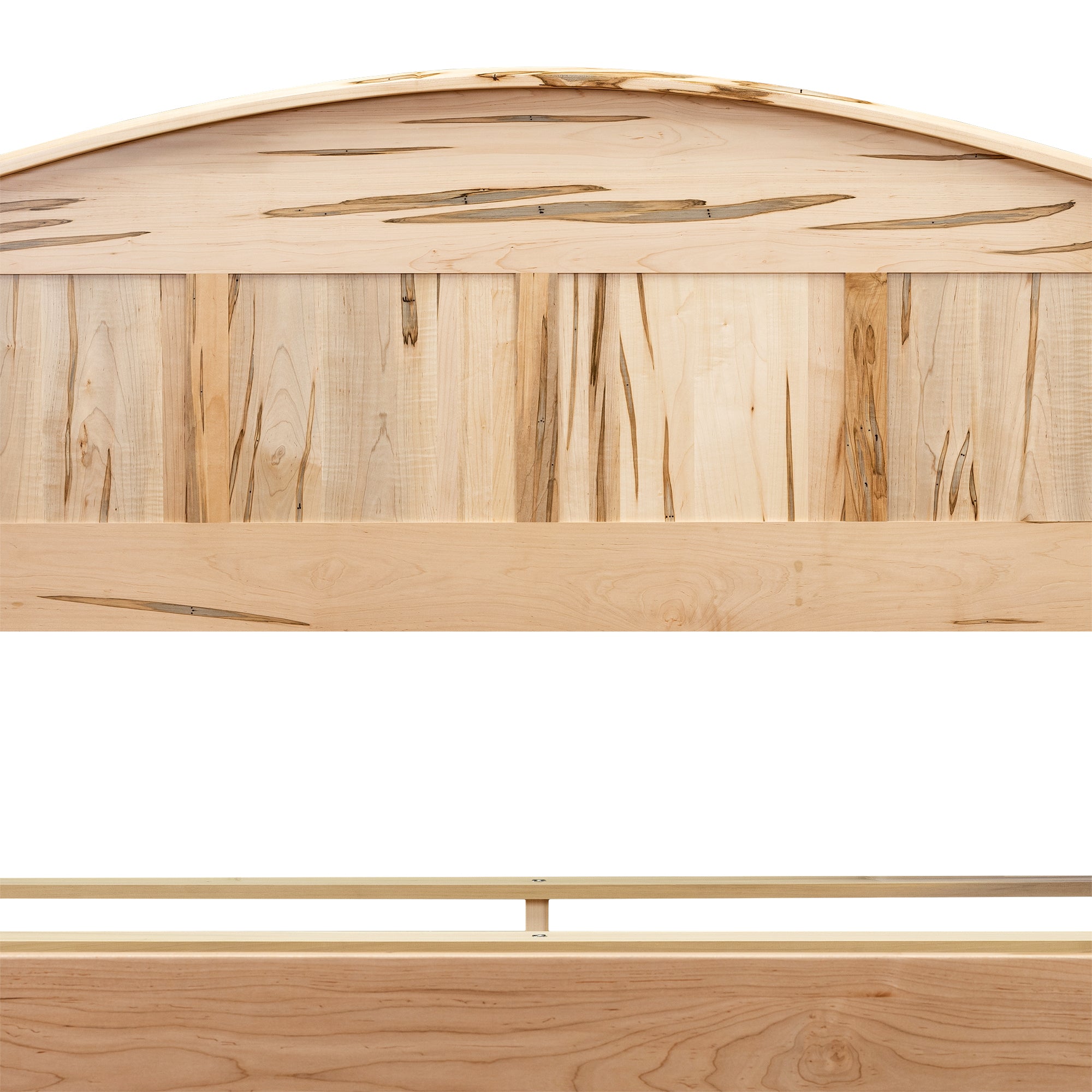 Shown in Regular King Size also known as Eastern King. This is beautifully shown in Wormy maple in a clear coat stain. The placement of the brownish and grayish tone varies. We cannot control the placement of these tones. Each furniture made of this Wormy Maple wood will be individually unique.