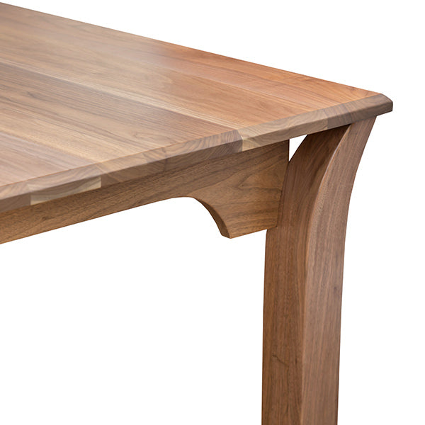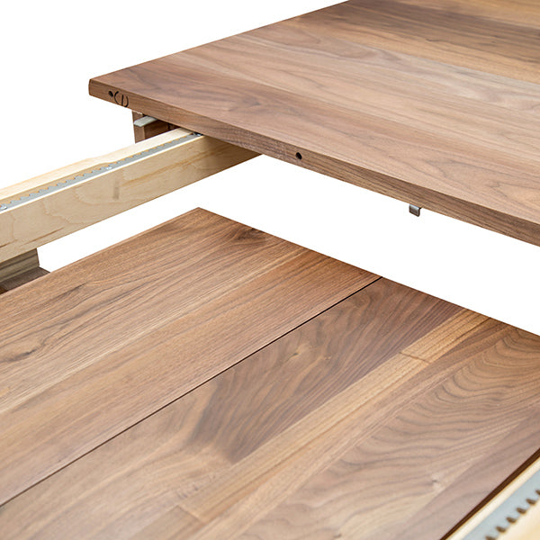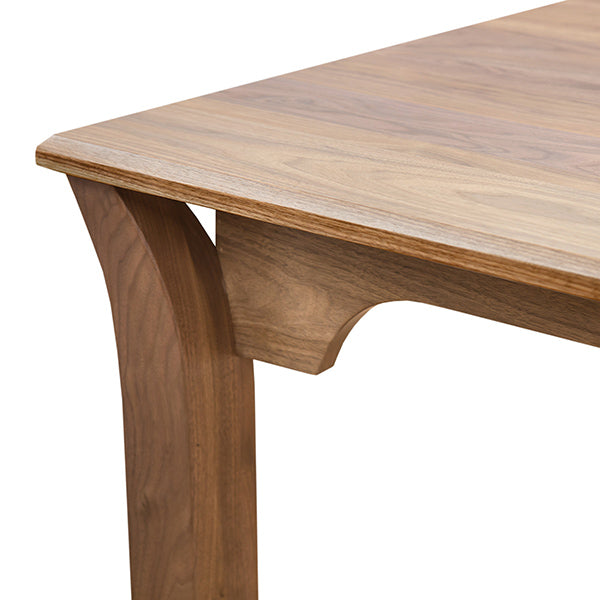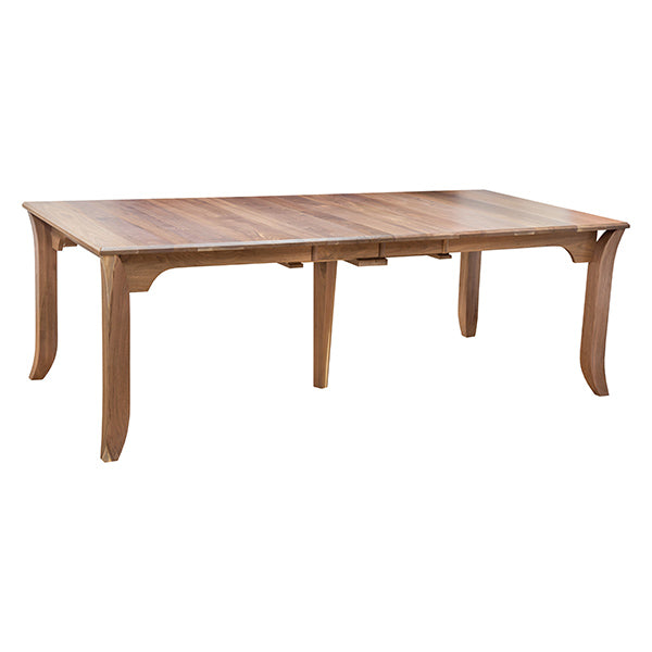 This Unique American Handmade Contemporary dining table comes as shown priced with 42? by 66? top size +4-12?extensions to bring this beast to 114? total length. It is crafted in Solid American Harvested Black Walnut with no veneer whatsoever. The strikingly bold curved legs appear floating with extremely sturdy triangulated construction. This design can be made in all of our woods and color choices because they are really individually hand made made.