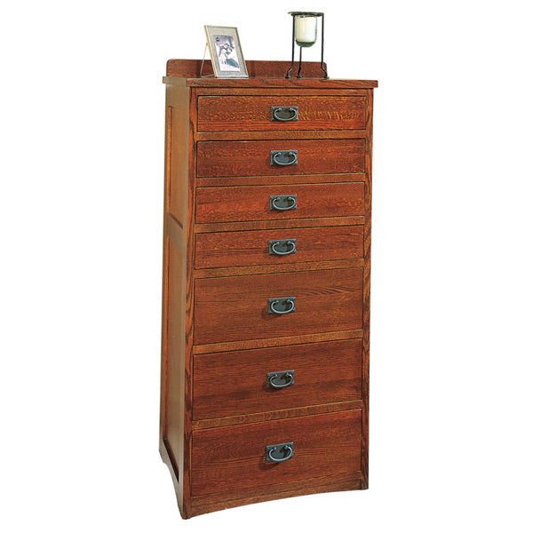 The Arts & Crafts Oak Lingerie Chest is perfect on a narrow wall or a walk-in closet. The piece has ample storage including seven (7) drawers. The drawers are solid wood with aromatic cedar bottoms that have an English dovetail joints on a Full extension slides to provide the finest action.