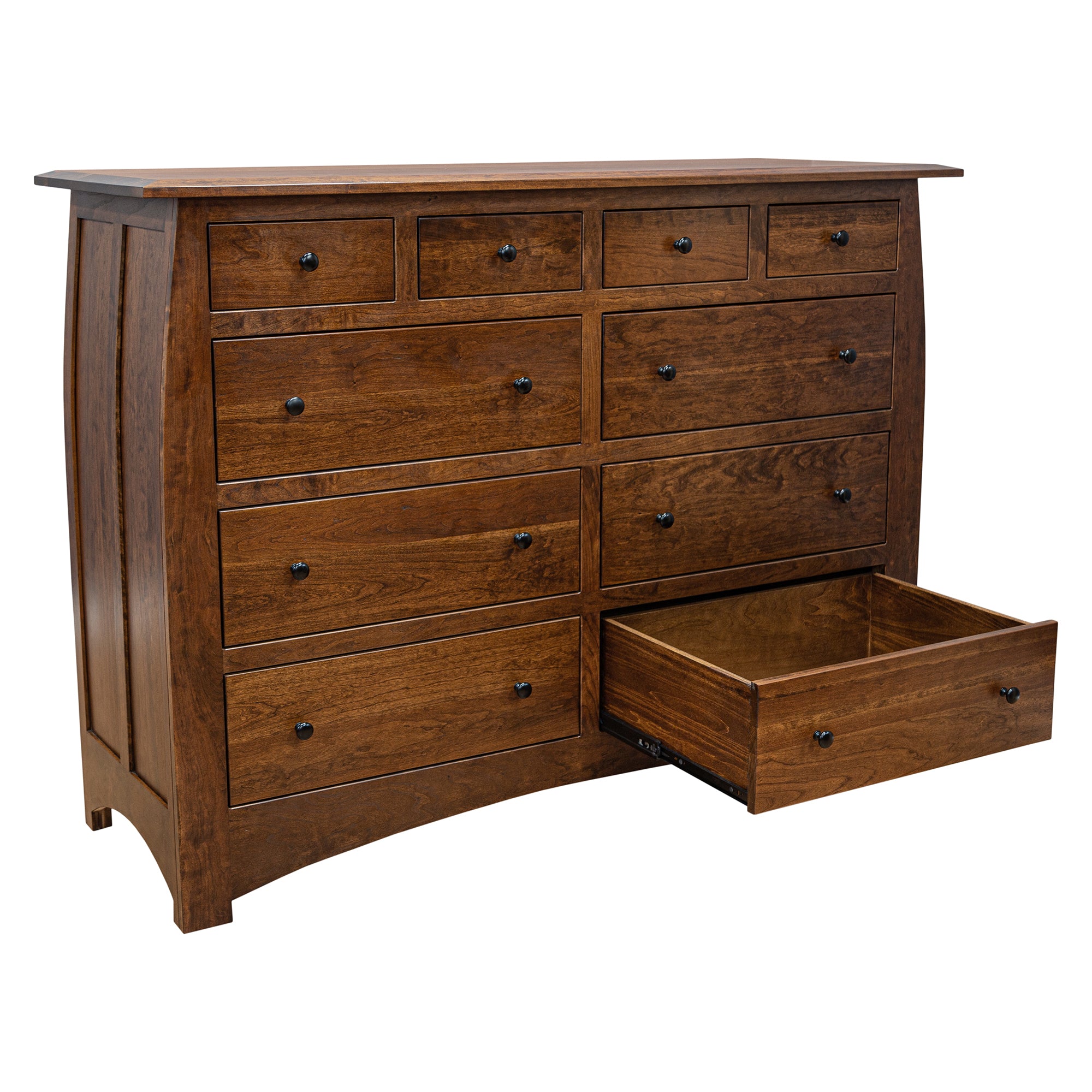 This Stylish Aspen 10 Drawer Chest display aesthetic and the ingenuity of the skilled Amish craftsman. This unit is handcrafted and not from an assembly line and great addition to your bedroom. This is also available in variety of woods and finishes. Inlay options are also available.