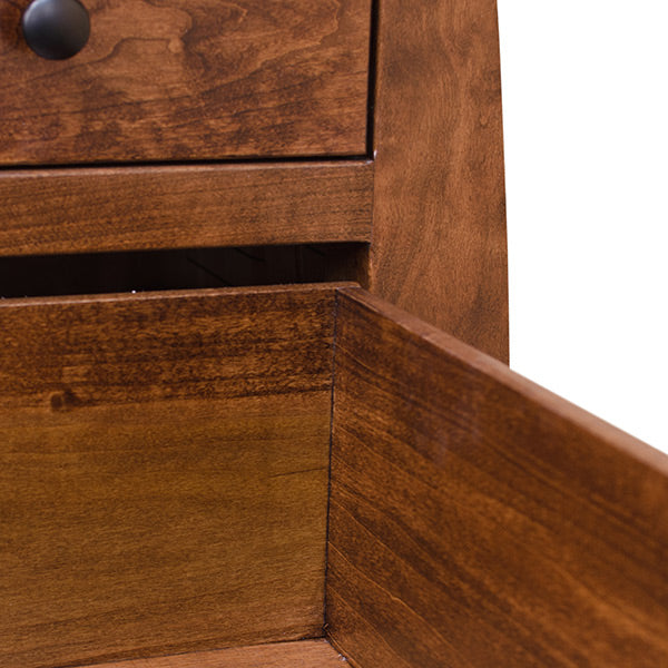 It features a sturdy full extension glides with dovetail drawers that ensure to last for repeated use. And lastly, as shown, it is made out of Solid Character Cherry that shows off the unique grain pattern of the wood.