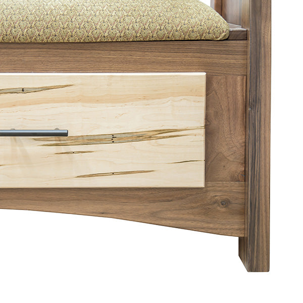 This Aspen style bench was customized for a Carmel California project that required something special. The materials chosen were Character Walnut and Spalted Maple. We added a padded seat and 2 dove tailed drawers. All finished in a natural satin clear finish. Can we make something for you?