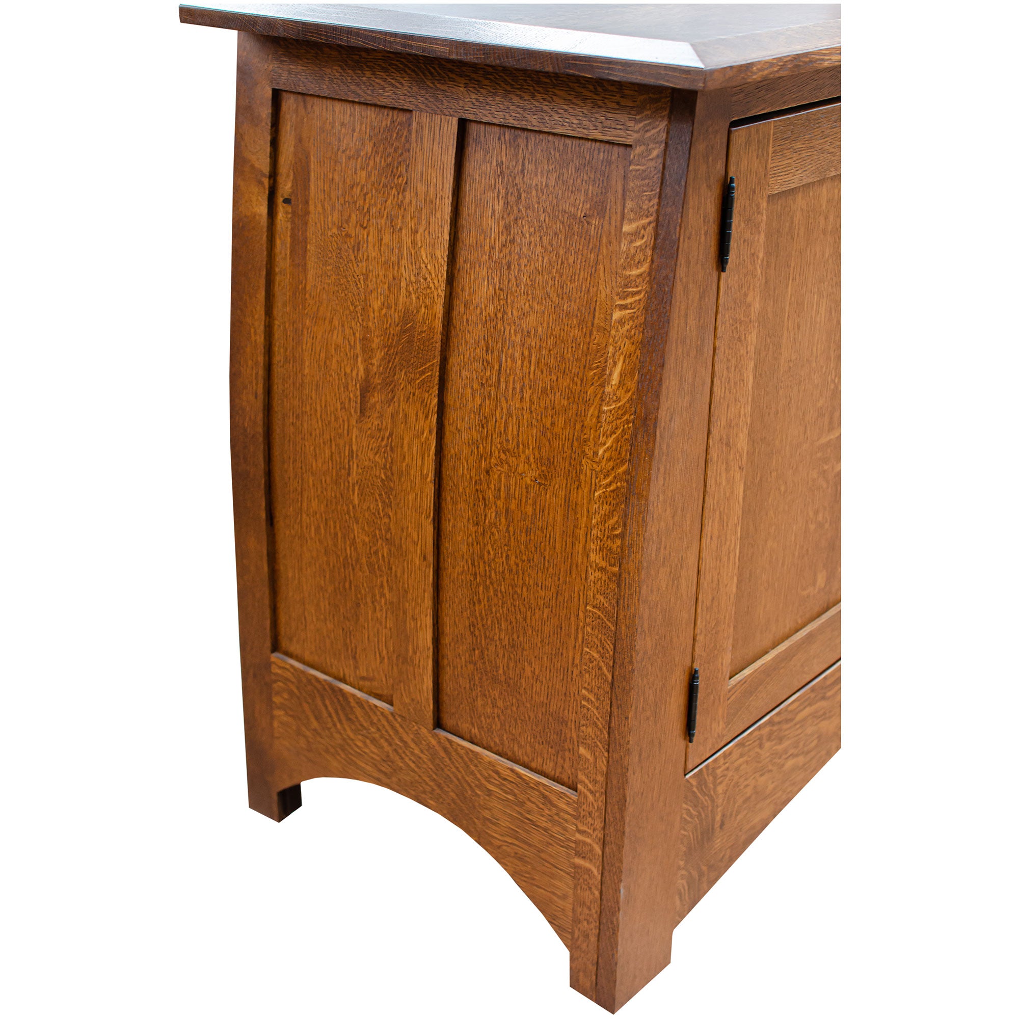 This curvaceous TV stand is part of our Aspen Series. Please note the optional Ebony inlay at the base and note we can build this TV console in any size, wood or finish. The first price shown to right before wood selection is in Character Quarter Sawn White Oak with inlays. These are all hand made with bent solid sides and are available with doors in wood or glass or are shown.