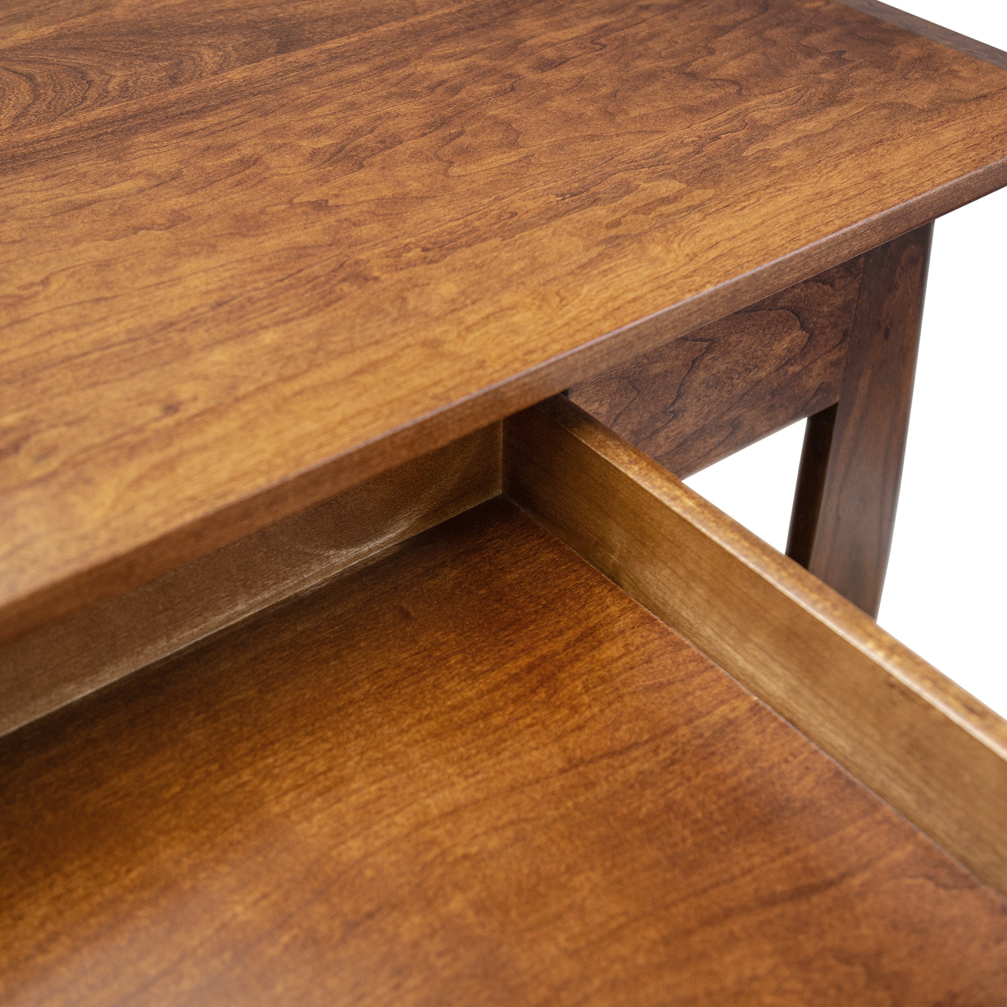 This Amish Hand Made Aspen Writing Desk pictured here is 48" wide and also available in any Size and any special details requested. Priced here in Solid Character Quarter sawn White Oak however All woods are available in your choice of Plain Cut Oak, Quarter Sawn White Oak, Walnut, Cherry or Elm. Color choices are almost unlimited (see below). Call fro Quotation for changes. This unique design harkens back to the mid 20th Century but will be at home in any Architectural era where wood and simple curves catch the eye. We can build any piece of furniture in this design.