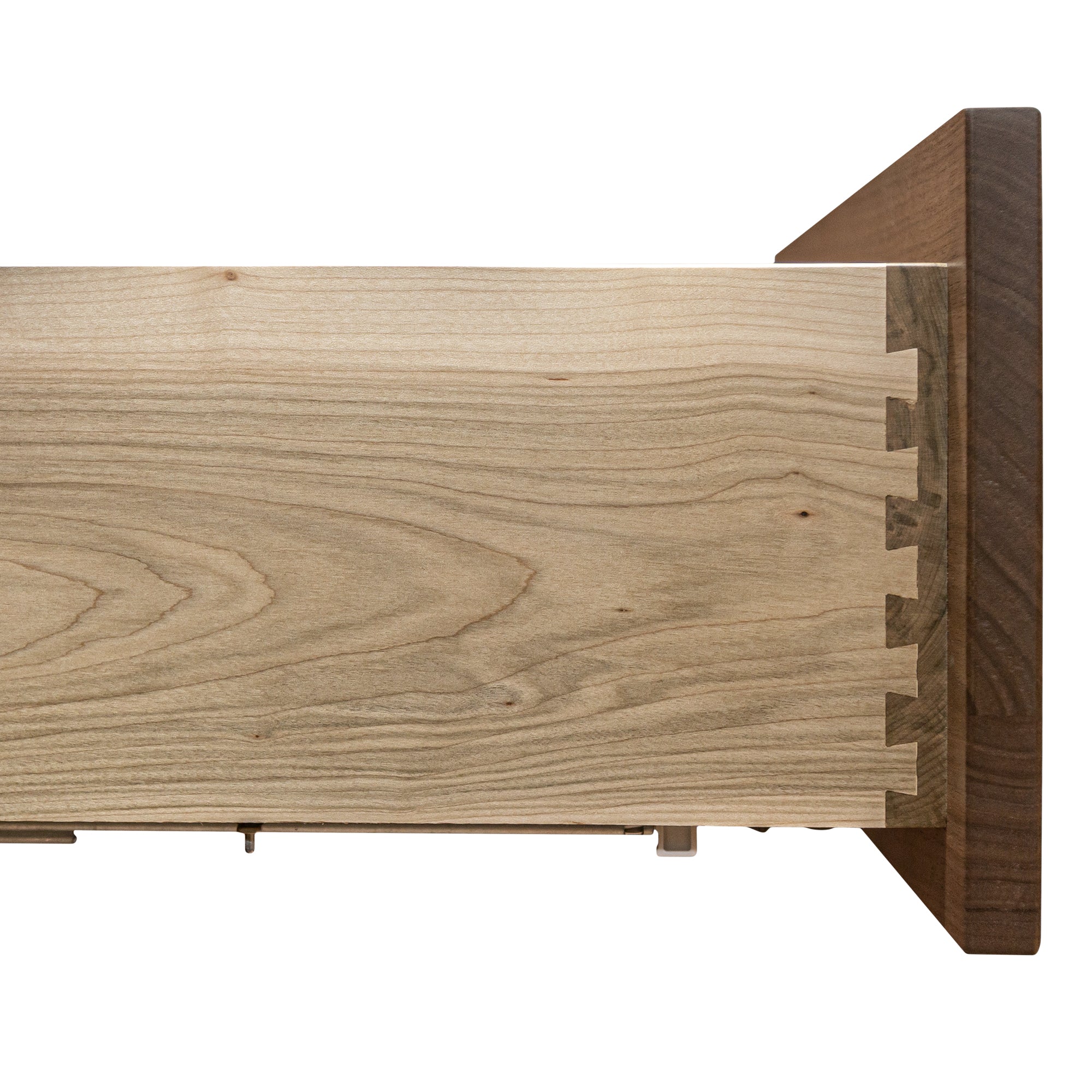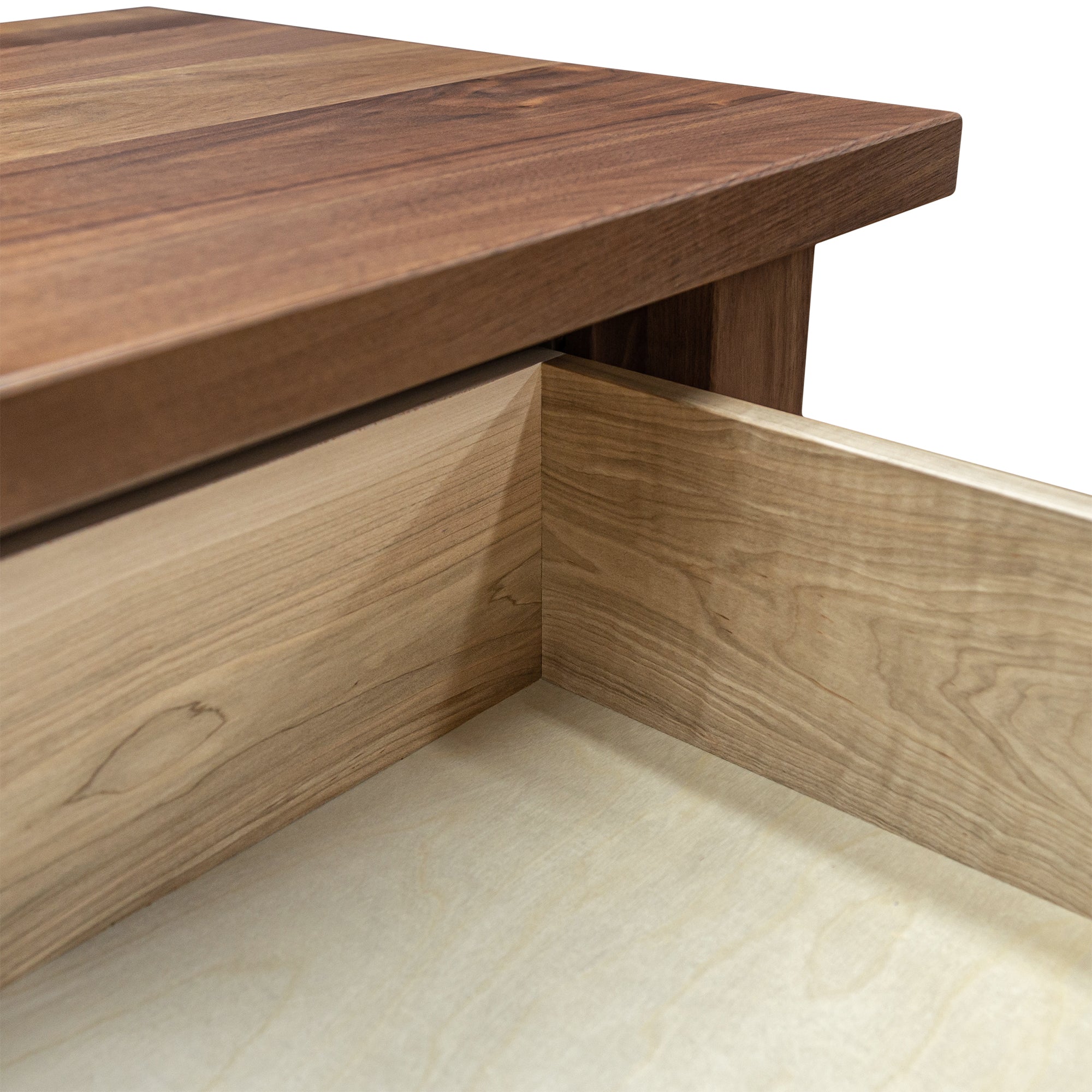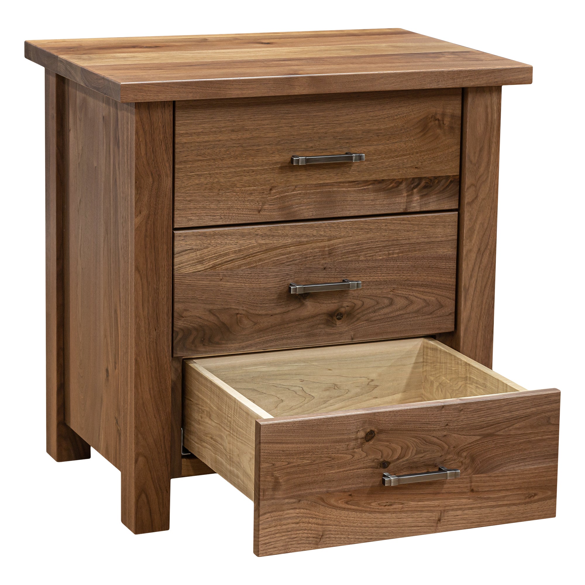 This Beaumont 3 Drawer Nightstand is one of many different finishes and woods but this specific piece is done in Brown Maple. We offer all the standard pieces like dressers, chests, nightstands, beds, desks, bookcases, file cabinets etc-etc-etc. Smooth curved corners with matching radius corners. Fully Dove Tail drawer joint and full extension drawer slides.