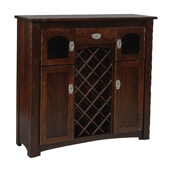 Our Brunswick Wine Cabinet can be expanded to any size, wood or finish. We craft our Amish Hand Made furniture with care and respect for the Craftsman Art. Wood Choices are Solid Maple, Character Cherry, Quarter Sawn White Oak, Gray Elm, Black Walnut and Plain Cut Oak. Pictured here is Character Cherry and is stained in OCS 230 on Character Cherry, then finished with our exclusive Urethane Conversion Varnish for ultimate durability.