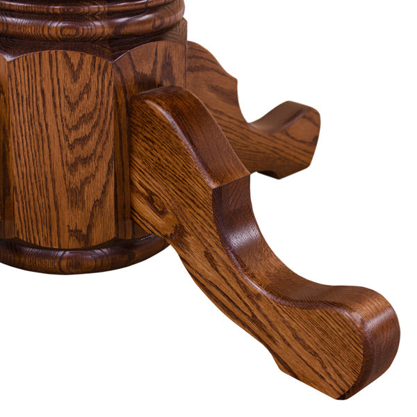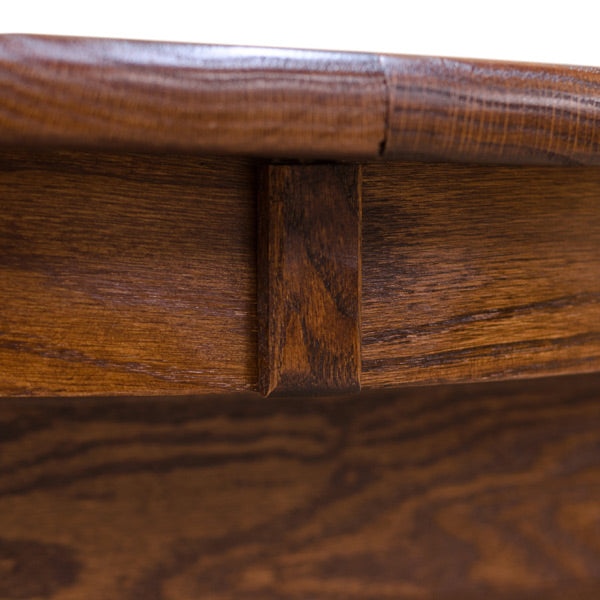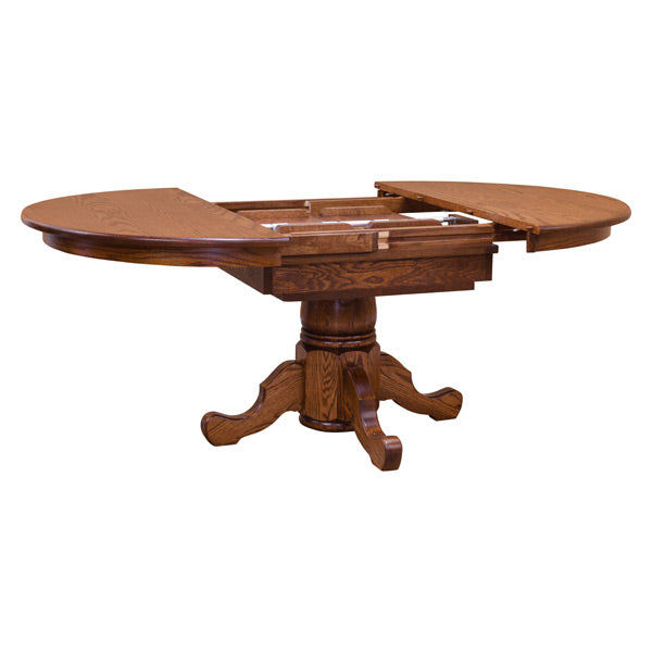 Amish Crafted Solid Wood FurnitureA gorgeous butterfly table is proudly made in the USA. It has an easy flip mechanism that lets you use either one leaf or both leaves at the same time. In addition, you also have an option of picking a 18" one leaf. This table is a sturdy, durable and beautiful table that is made with high quality materials. As shown, the red oak wood displays a noticeable attractive grain pattern that most people are familiar of.