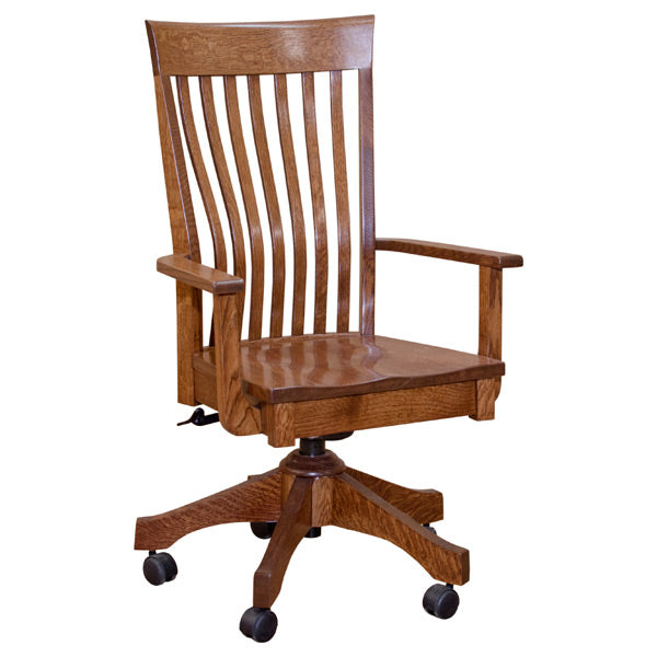 This chair features a curved back to accommodate the natural curve of the spine providing excellent comfort. Admire its clean lines and simplicity on the details that encompasses the Mission Style look. With all of these great features in mind, this a definite must have in your home office.