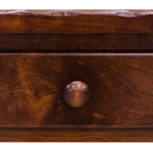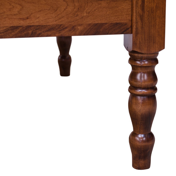 And lastly, it has a bread board top. Bread-Board is constructed with end caps finger jointed and doweled onto the ends of the wood seat. This is as in the finger grip on a kitchen bread board pull out. This is an attractive detail often imitated with veneer overlay to stimulate this design. It is a real floating doweled end cap.