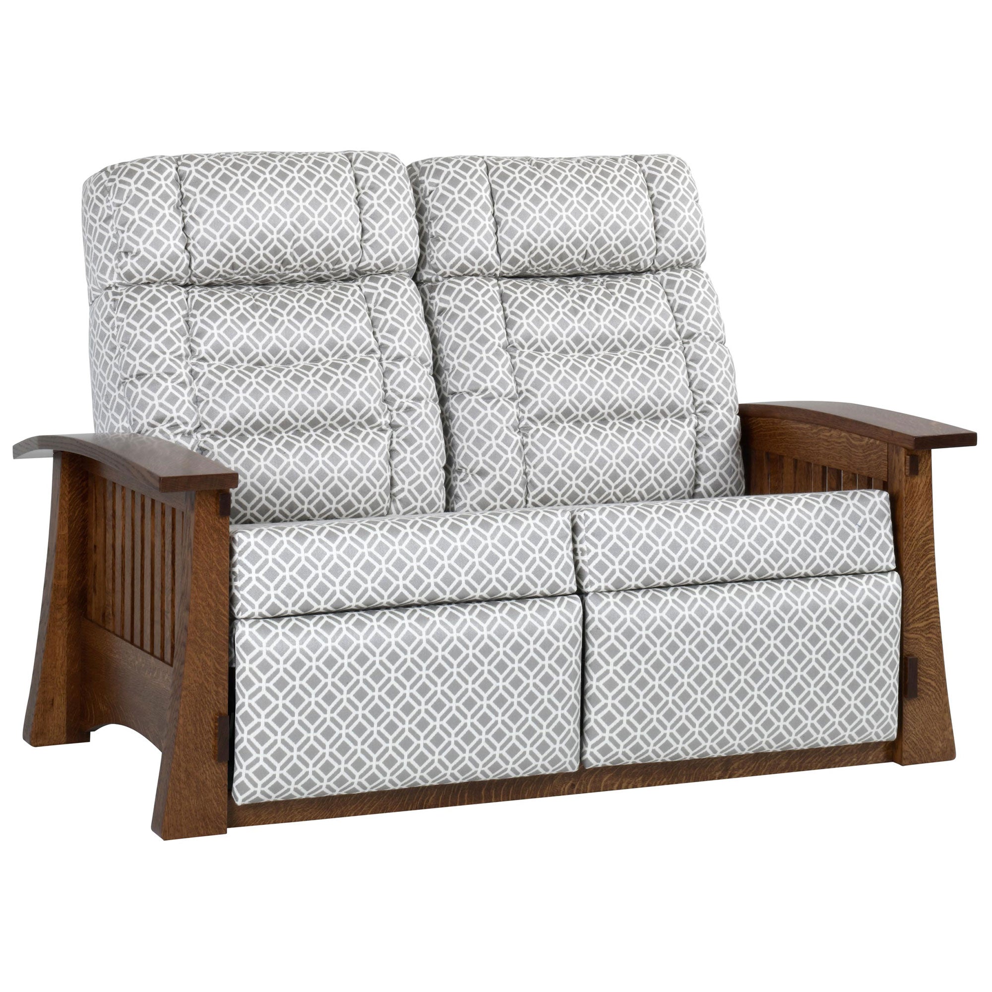 This Craftsman Spindle LoveSeat shown in the Quartersawn White Oak wood in the OCS 113 with a standard fabric. This gorgeous LoveSeat is available in a variety of woods, finishes and upholstery for an additional charge.