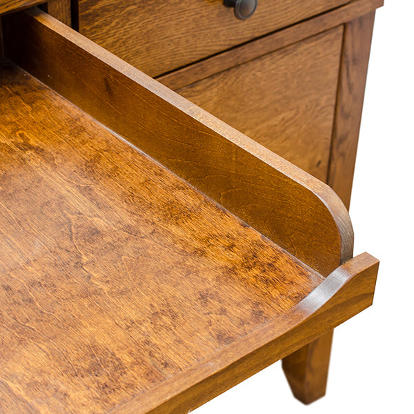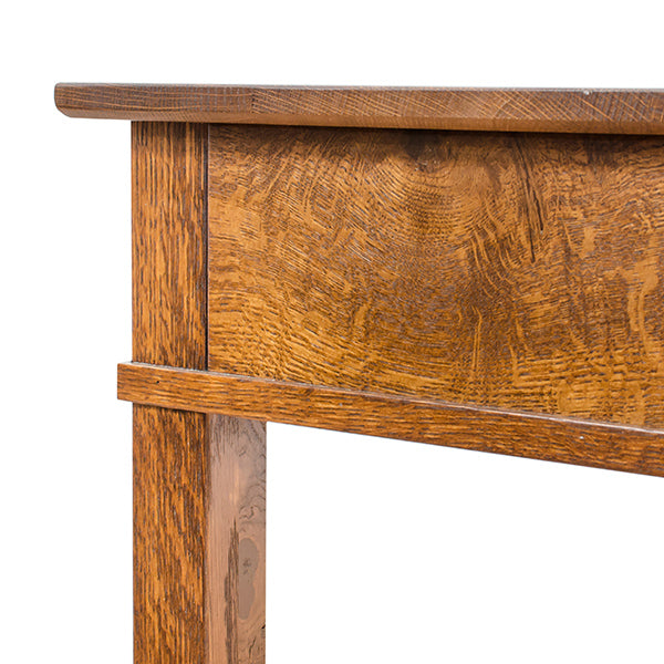 This Amish Hand Made Craftsman 62? Desk pictured here is also available in any Size and any special details requested. Priced here in Solid Character Quarter sawn White Oak however All woods are available in your choice of Plain Cut Oak, Quarter White Oak, Walnut, Cherry or Elm. Color choices are almost unlimited (see below). Call fro Quotation for changes. This unique design harkens back to the mid 20th Century but will be at home in any Architectural era where wood and simple curves catch the eye. We can build any piece of furniture in this design.