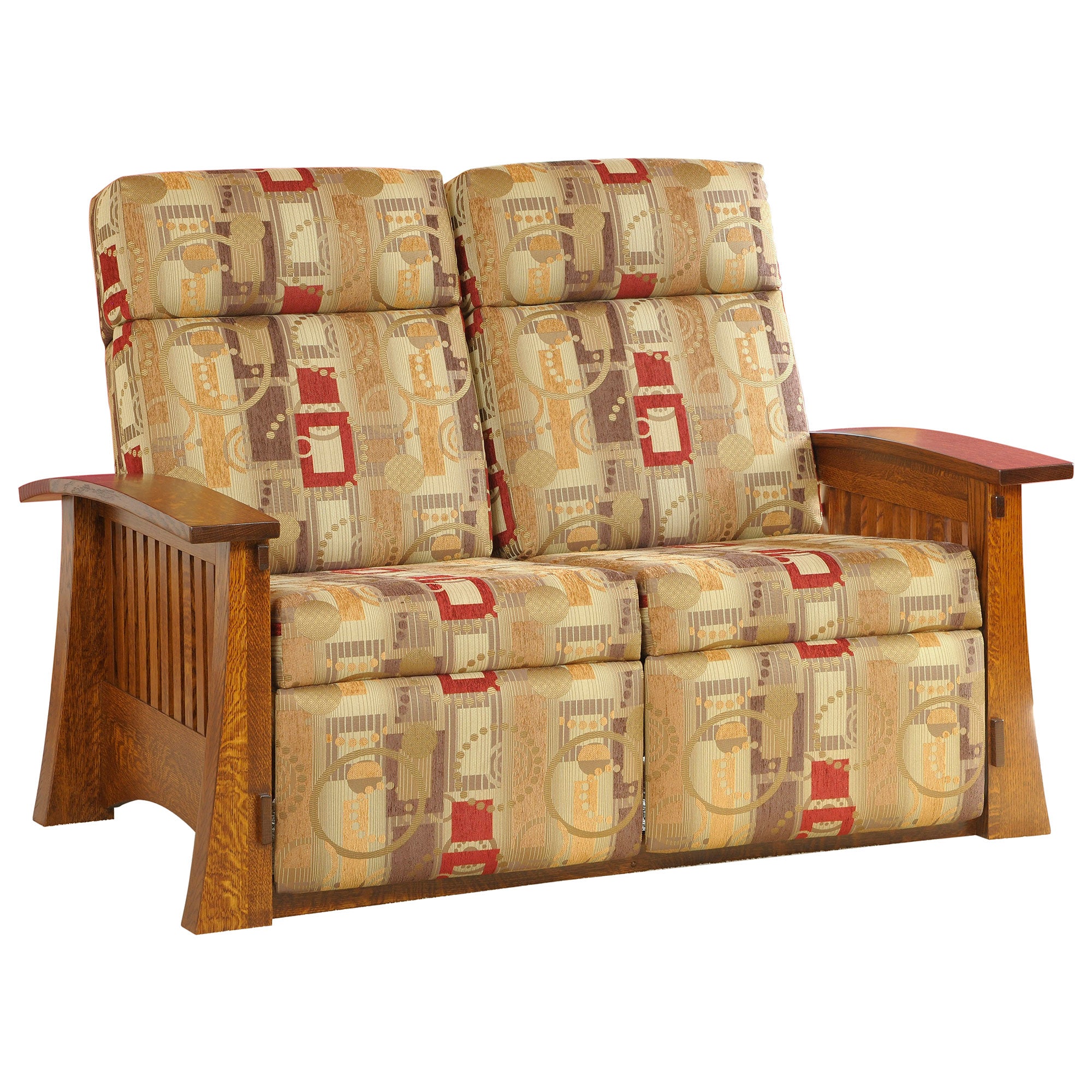 This Craftsman Spindle LoveSeat shown in the Quartersawn White Oak wood in the OCS 113 with a standard fabric. This gorgeous LoveSeat is available in a variety of woods, finishes and upholstery for an additional charge.