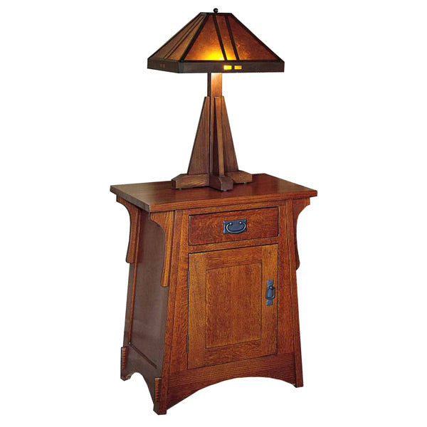 This elegant Crofter Night Stand features gracefully tapered sides with arched and tenoned front and side rails. The drawer is with solid wood drawers that have a side mount full extension glides, to provide the finest action. The storage door features tight grained Quartersawn Oak. The top and the drawer front are 1? thick solid oak, as is the custom of heirloom quality furniture. This piece will be a welcomed addition of