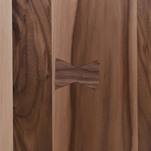 This unique item was a custom made for a client. It is made out of beautiful Character Walnut that is stain with a natural finish. With this finish, it accentuates the gorgeous grain pattern of the character Walnut. This stool can also be use as storage, the bottom is open and it has a hollow interior. And lastly, notice the two butterfly detailed that is located on front and back of this unit.