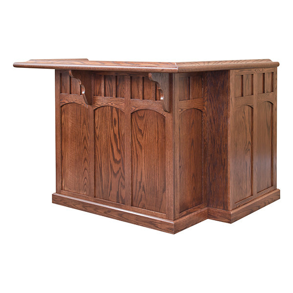 These bars are generally built to order. Any Wood, finish or color is available. This one was built to James from New Mexico and we provided the perfect opening for his refrigerator. We can also provide a custom back bar. Contact us today for a quote.