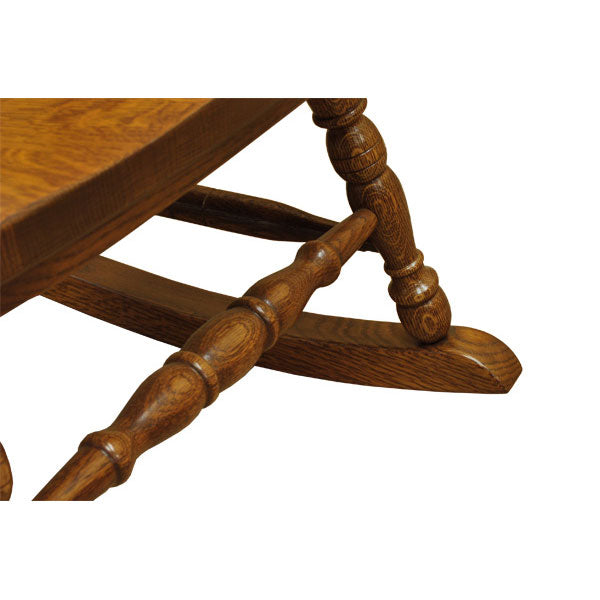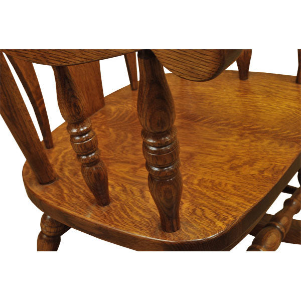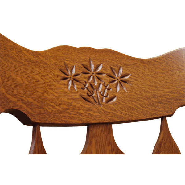 This Amish Daisy Rocking Chair boasts an unparalleled level of craftsmanship in handmade furniture; constructed by skilled Amish craftsmen with plain cut Quarter Sawn Oak (shown). This exceptionally durable rocking chair is also sealed with conversion varnish that protects this elegant piece from water, oil, alcohol and even nail polish. In addition, the ergonomically designed furniture is hand sanded and smooth to the touch.