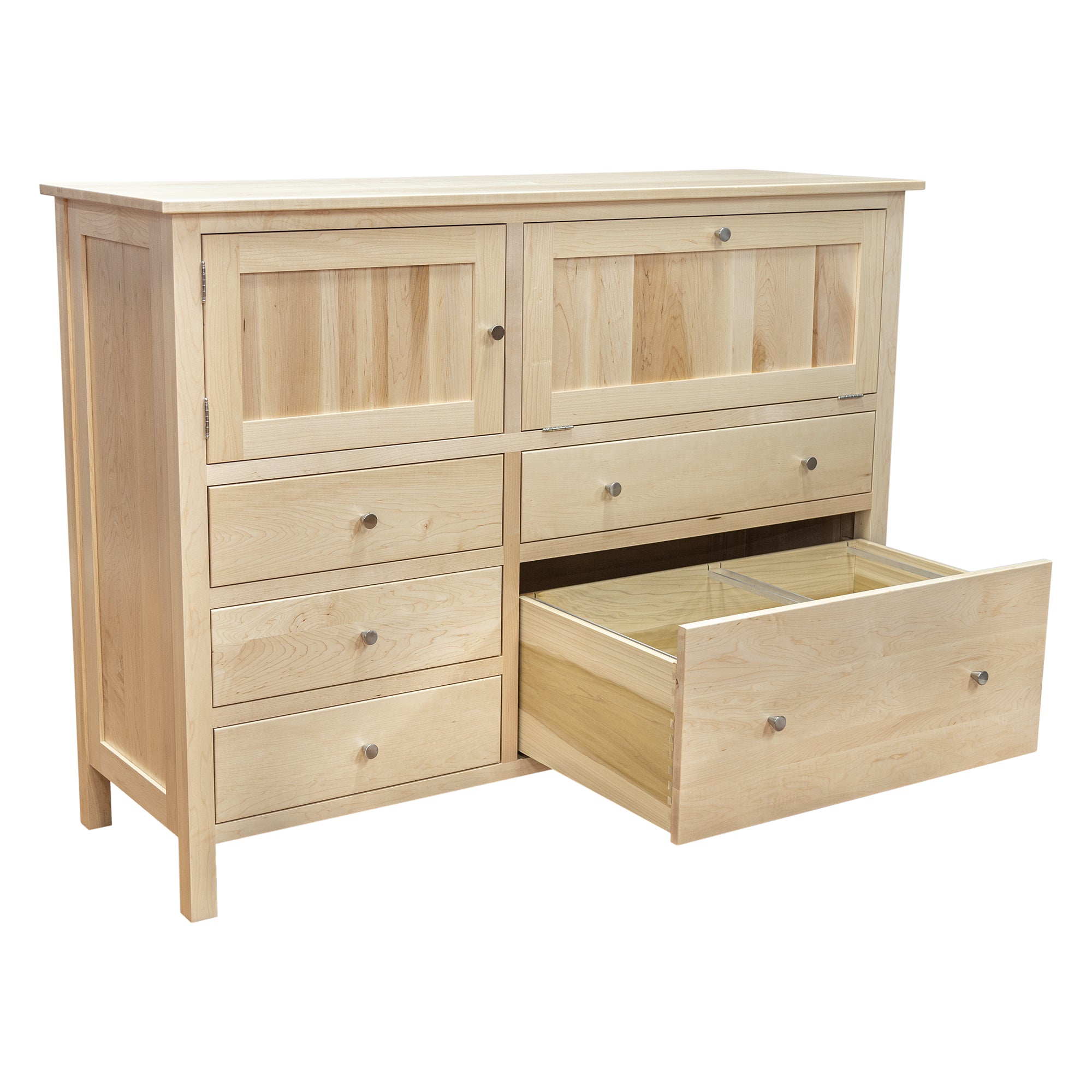 This Stylish Drop Desk Dresser displays the aesthetic and the ingenuity of the skilled Amish craftsman. This unit is handcrafted and not from an assembly line and great addition to your bedroom. This is also available in a variety of woods and finishes. Inlay options are also available.