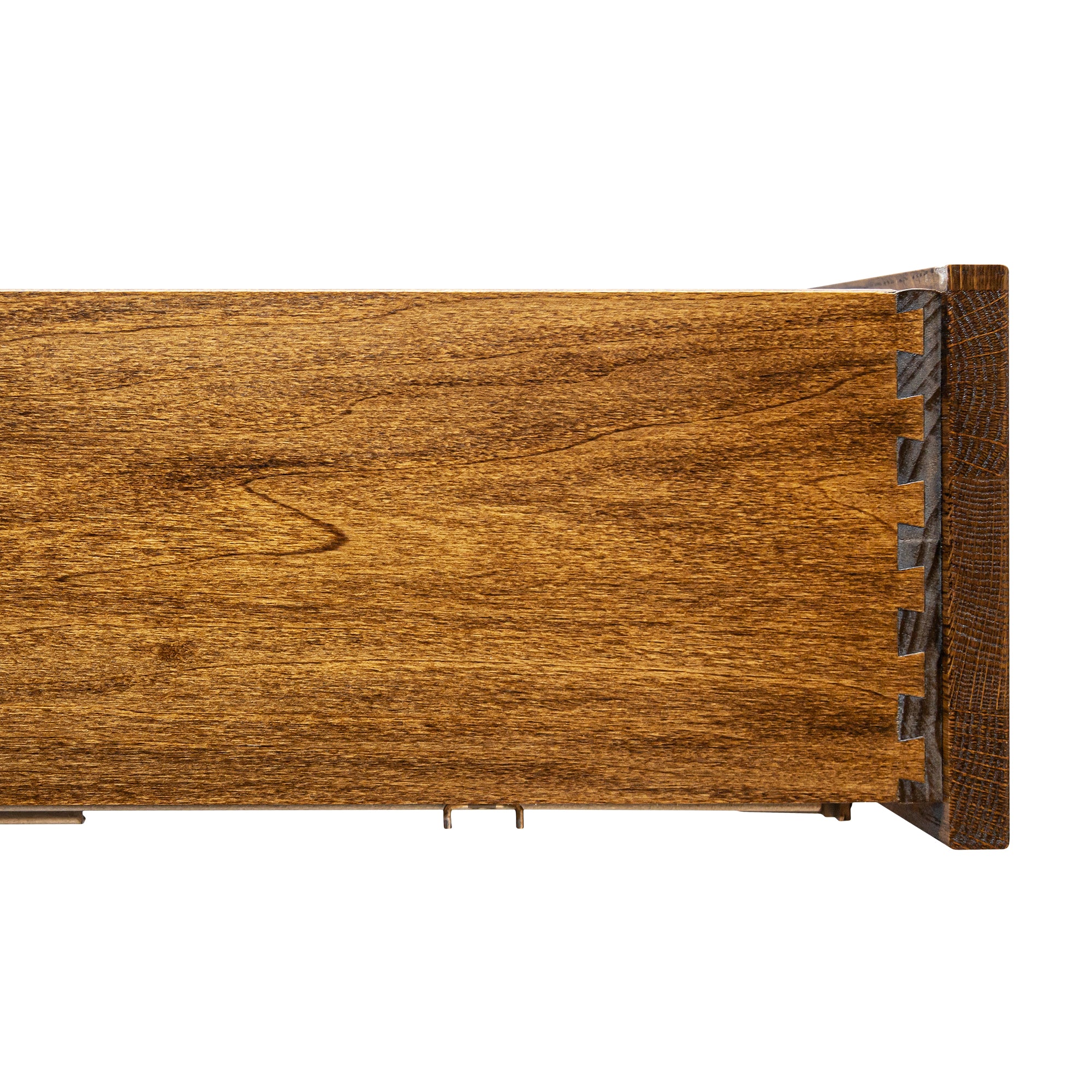 This Dutch 9-Drawer Mule Dresser is constructed from Solid Quarter Sawn White Oak and finished in a warm Mission Cherry (shown); this unit features solid oak drawers made with traditional English dovetail joints. In addition, the drawers sit on full-extension under-mount soft-close drawer guides that easily glide open and shut with no exertion necessary.