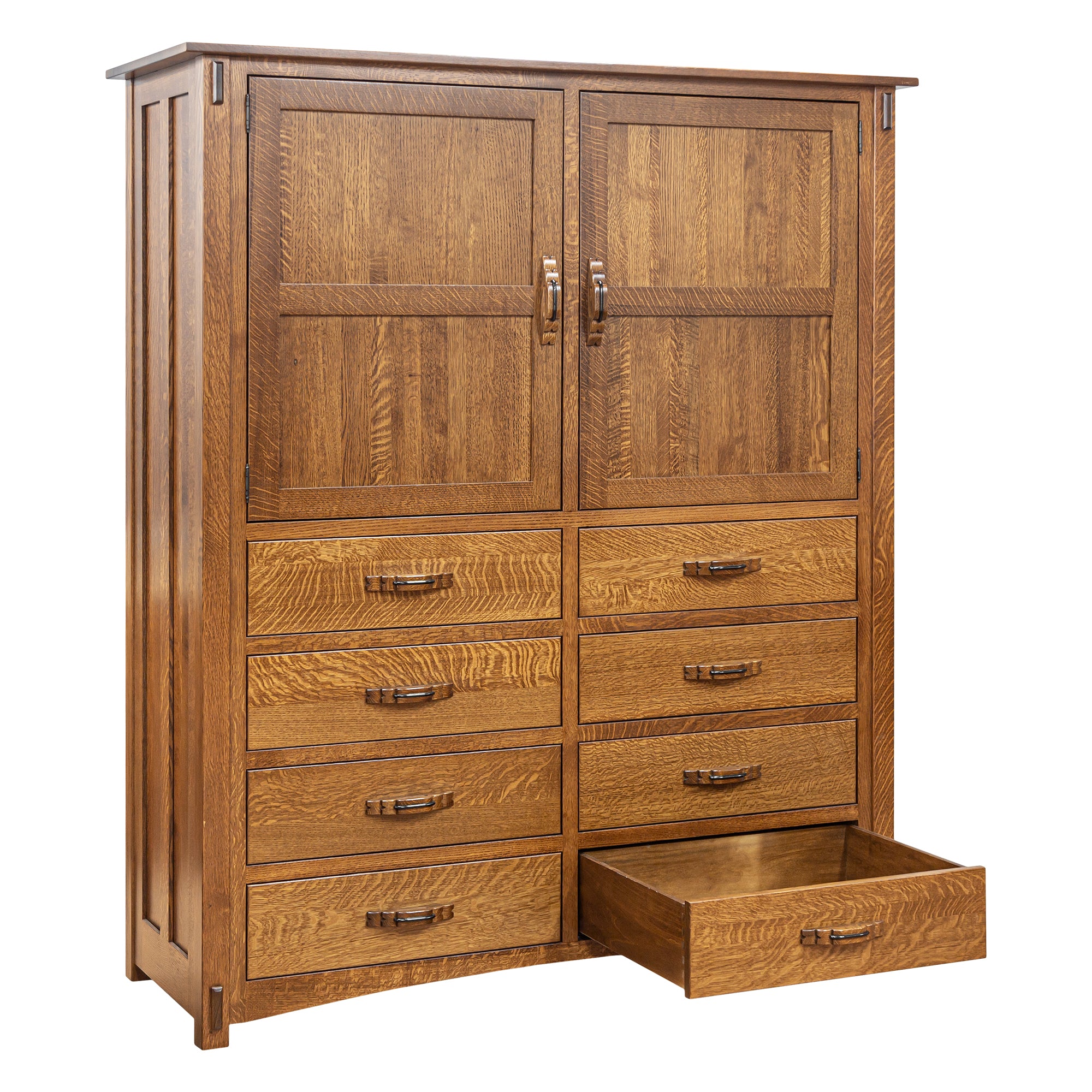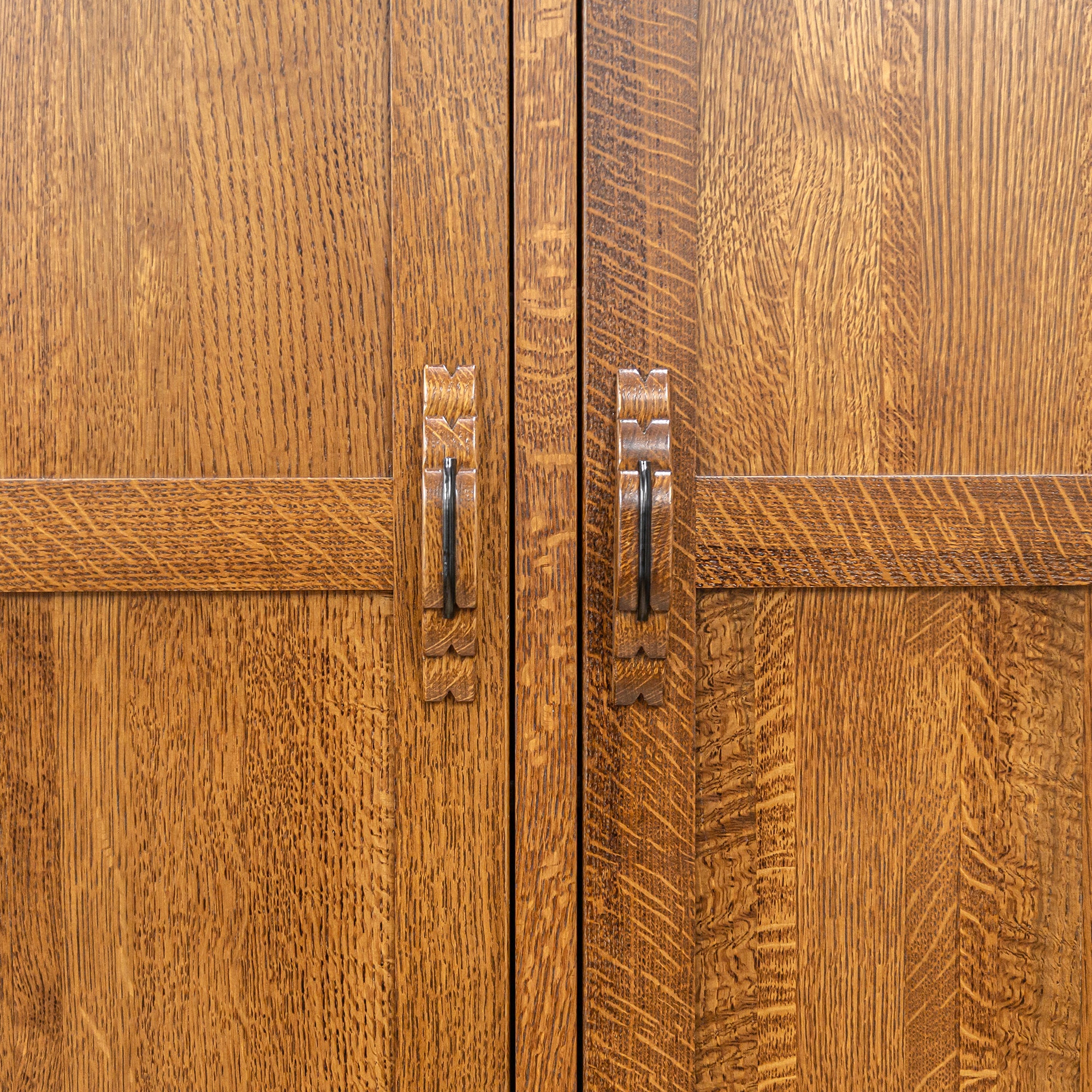 Our Dutch Greene and Greene Series is an amalgam of classic designs From Charles and Henry Greene, the Arts and Crafts Brothers, Charles Rene Macintosh and the long tradition of the Arts and Crafts Movement. Note the Ebony inlay Drawer pulls and spines crafted within the Bread boarded top. Hand Crafted by American Craftsman with generations of woodworking experience. We created this set for Dennis from Meadows California to his exacting specifications and desires. Can we build something as intriguing and beautiful for you!