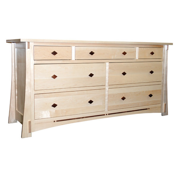 The Dutch Maple Dresser w/ 7 Drawers features a unique contemporary design with a flavor of Frank Lloyd Wright and the Arts & Crafts Movement. The entire Dutch group is handcrafted in the Heartland of American from solid Hard Rock Maple. The maple is hand selected for its even white color tones and striking grain patterns.