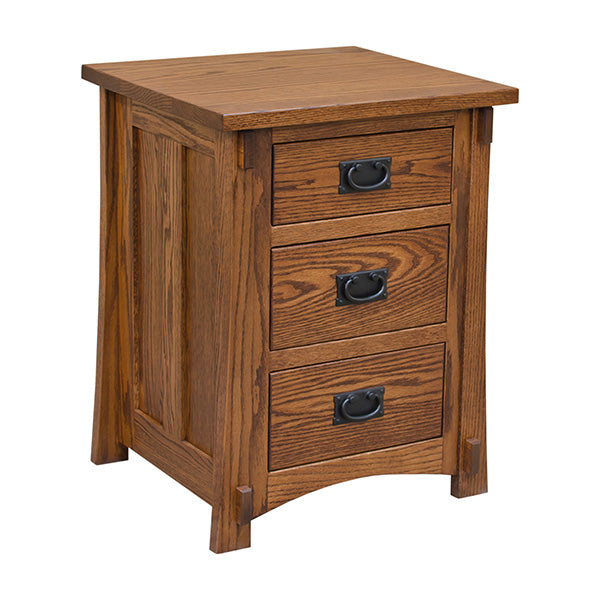 This Amish-crafted Mission 3-Drawer Nightstand was constructed using solid Red Oak (shown) by experienced Amish craftsmen with the utmost diligence and the strictest attention to detail.