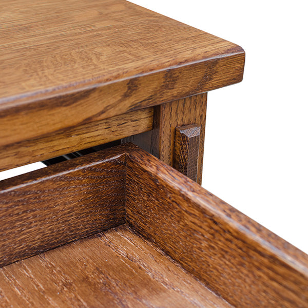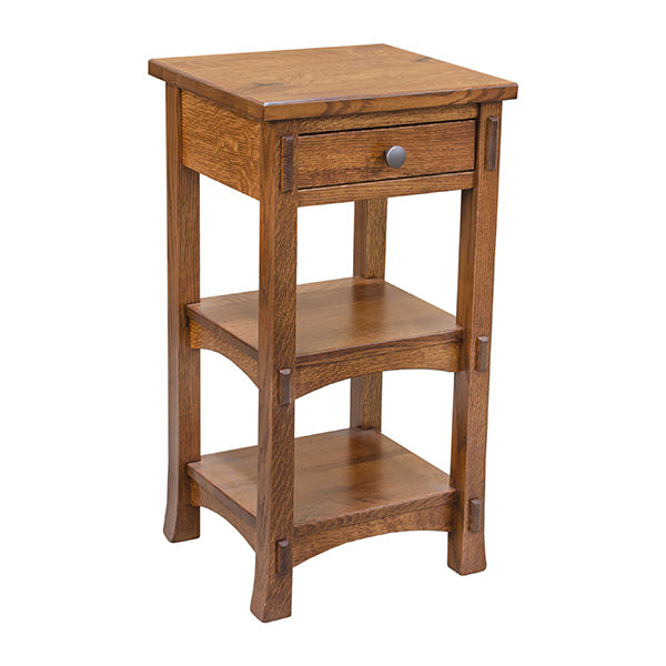 This finely Amish Crafted Dutch Phone Table is part of our extended Dutch series which includes over 200 item in all categories. 2 dovetailed drawer and your choice of both finish and wood species. Shown in Character Quarter Sawn White Oak. Yes, we have matching coffee tables as well as end tables, TV consoles and desks. Most pieces displayed on floor and in stock!